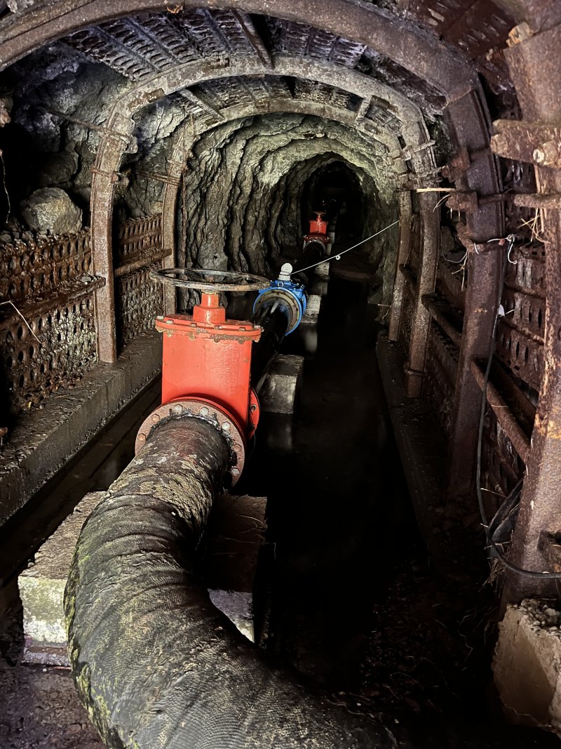 Saint-Denis est alimenté en eau de surface (ESU) à partir de la Rivière Saint-Denis et en eau souterraine (ESO) provenant du Bras Guillaume. Cette eau, trop difficile à récupérer en passant par le Bras Guillaume, a pu l'être grâce à un tunnel situé près du Bras Citron. Comme tous les captages de l'île, il doit être scrupuleusement respecté, surtout en ce qui concerne la pollution. Une grille en protège l'accès et une pancarte précise les sanctions en cas de franchissement. La piste ou le sentier qui longe la canalisation est assez large par endroit pour y organiser un casse croûte plutôt que les infrastructures de recueil des eaux.