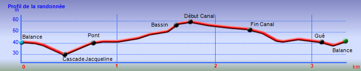 Se rendre à Langevin en venant de Saint-Joseph - Passer le pont enjambant la Rivière Langevin - Tourner immédiatement à gauche vers Grand Galet et stationner près de la balance pour la pesée de la canne à sucre - Remonter sur le pont et descendre l'escalier vers les rives de la rivière - Prendre à gauche sur le sentier bétonné puis descendre vers la cascade Jacqueline - Remonter par le même itinéraire jusqu'à l'escalier - Poursuivre jusqu'à la route puis remonter la rivière sur les sentiers en rive gauche - Rejoindre un bassin alimenté par une courte cascade puis franchir le gué une vingtaine de mètres en amont - Rejoindre le canal Langevin et le remonter jusqu'à la fin du passage - Entreprendre la descente en longeant le canal au plus près jusqu'à la ruine de l'usine sucrière - Faire demi-tour et emprunter la route qui passe devant l'ancienne sucrerie - Rejoindre au plus vite la rive et descendre la rivière en rive droite - Avant le pont, franchir la rivière par un gué et rejoindre la balance et le véhicule.