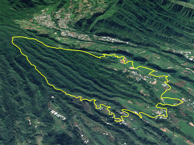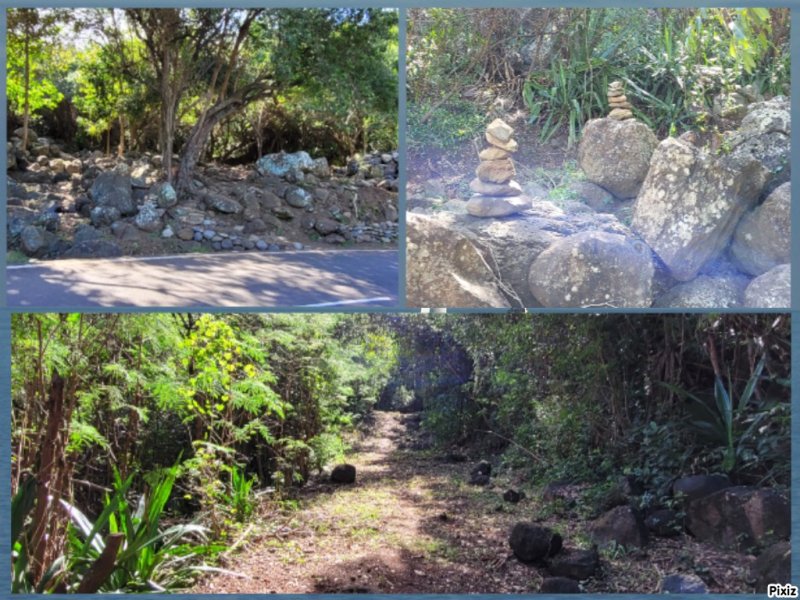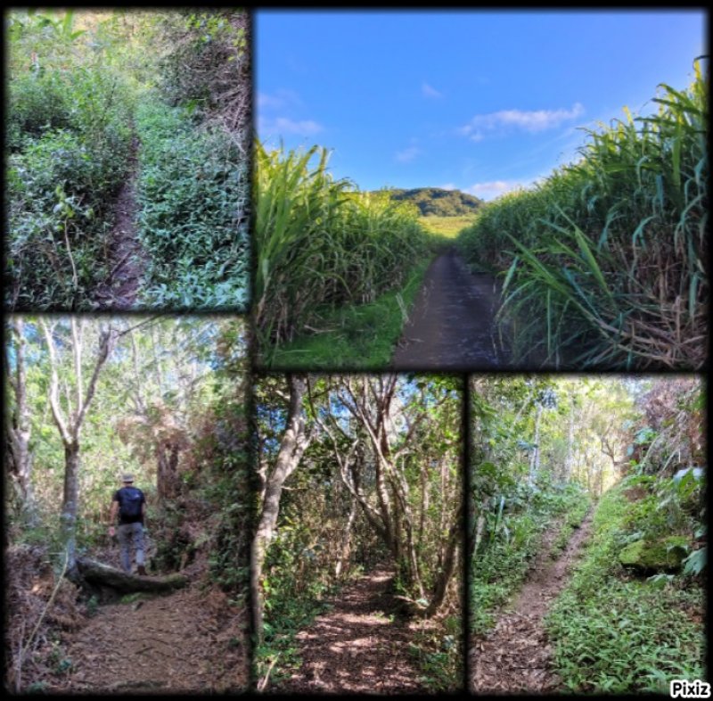 Le sentier Grand Case, non marqué sur les cartes, est étonnamment en très bon état et ne nécessiterait que quelques heures de nettoyage pour le rendre aussi praticable que celui de la Pièce Jeanne. Il est surtout utilisé pour se rendre à la Source la Boue en venant de la Pièce Louise. Un sentier, rencontré à 980 m d'altitude part sur la droite et se dirige de manière acrobatique vers le Petit et le Grand Bras. Il sera reconnu lors d'un prochain passage vers le Bras des Merles en utilisant ce sentier. Le reste de la boucle emprunte longuement routes et pistes à travers champs d'ananas ou bananeraies. Le sentier de la Pièce Jeanne grimpe régulièrement vers les Makes et le Sentier du Malabar Mort en offrant de beaux points de vue sur les Makes, la Chaine du Bois de Nèfles ou le Dimitile au loin. Il est conseillé aux premiers randonneurs qui effectueront ce parcours de se munir d'un sabre pour retracer les 30 premiers mètres si envahis qu'il faut ramper sous les branches. Une fois ce petit travail exécuté,quel plaisir de parcourir la boucle dans les deux sens.