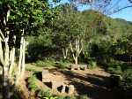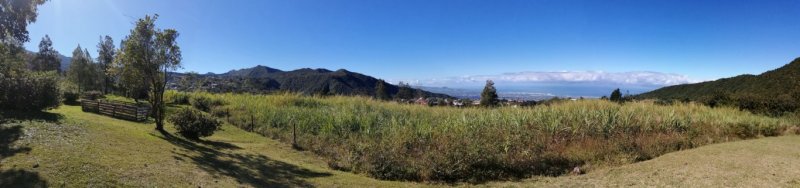 Après une paire d'heures sur le Malbar mort et avant de faire la boucle Grand Serré-Les Canots, je prends le temps d'une pause ensoleillée sur cette aire des platanes. Des jardiniers sont à pied d'oeuvre et ils doivent l'être souvent vu la perfection du jardin ! Allées taillées, herbe tondue, bas-côtés nets, c'est très beau. En descendant un peu on a de belles vues sur la côte, où j'ai pu voir l'écume blanche de la houle. Très belle vue aussi sur les collines environnantes.
