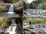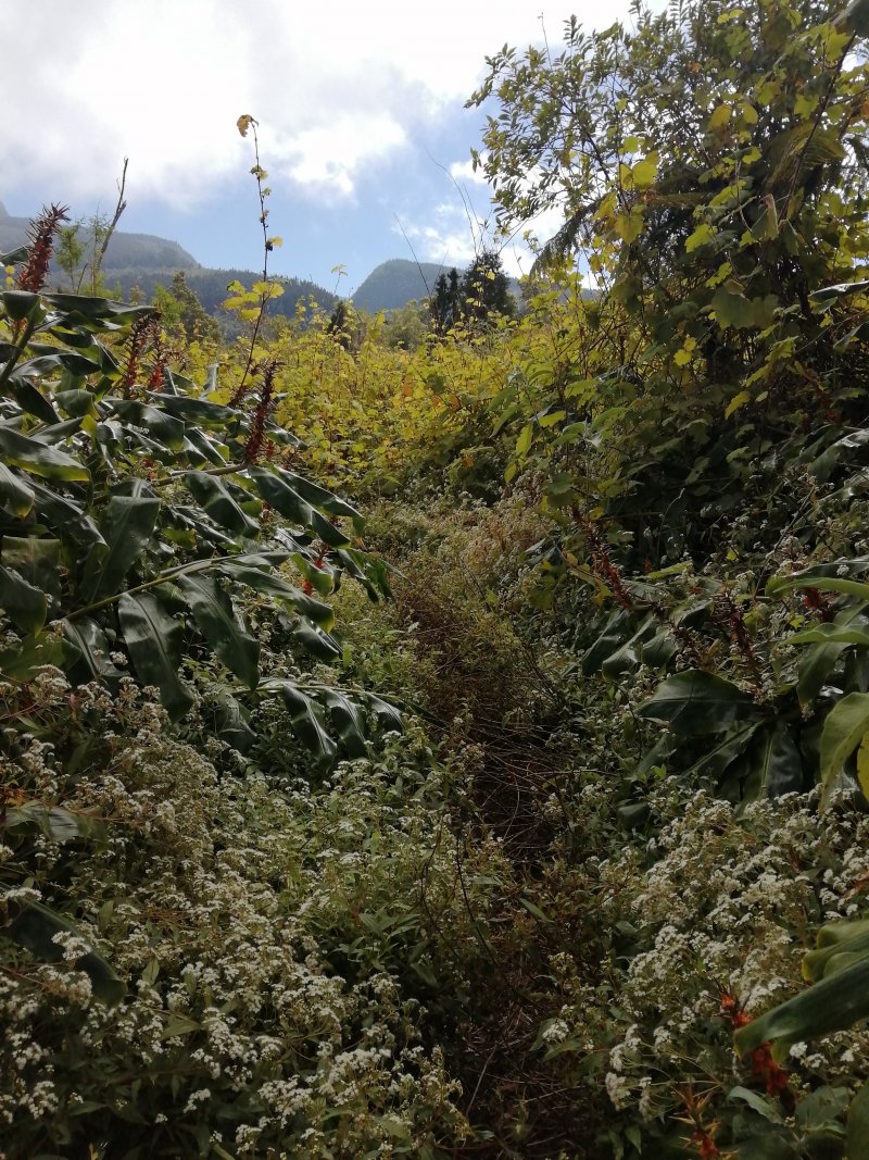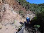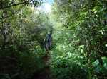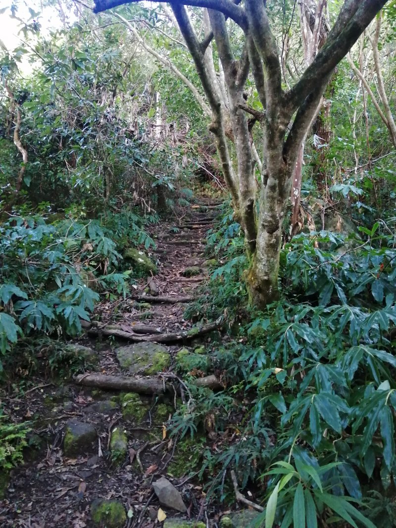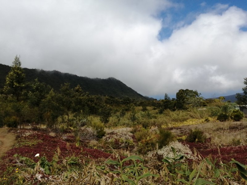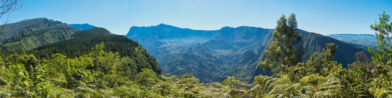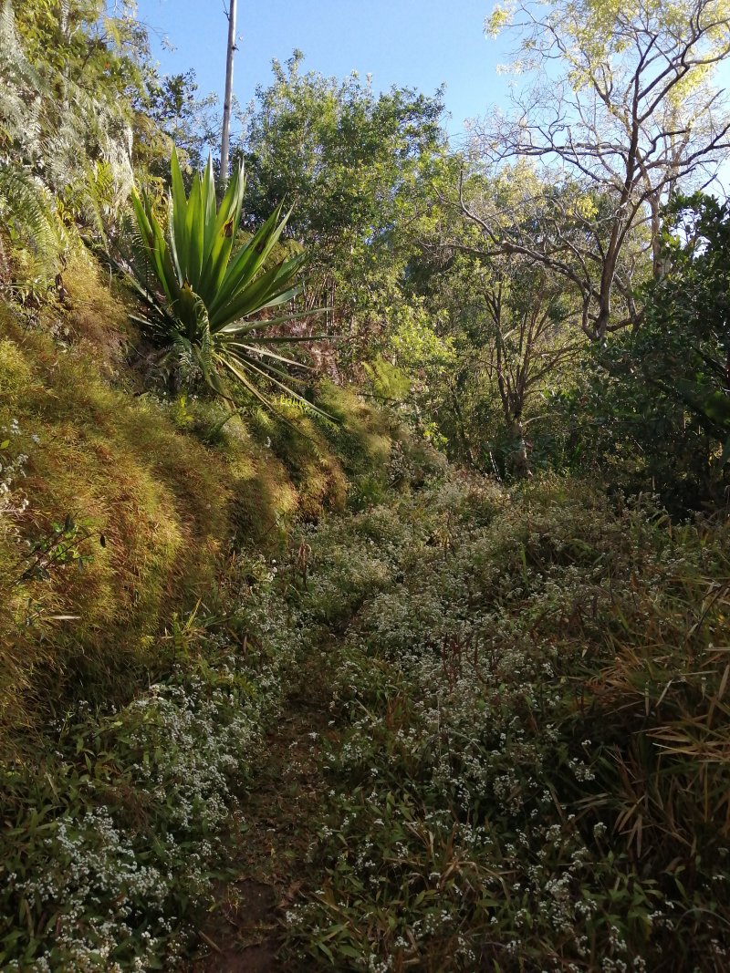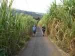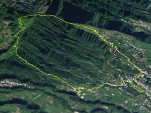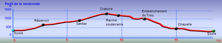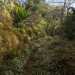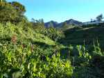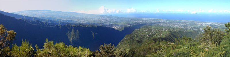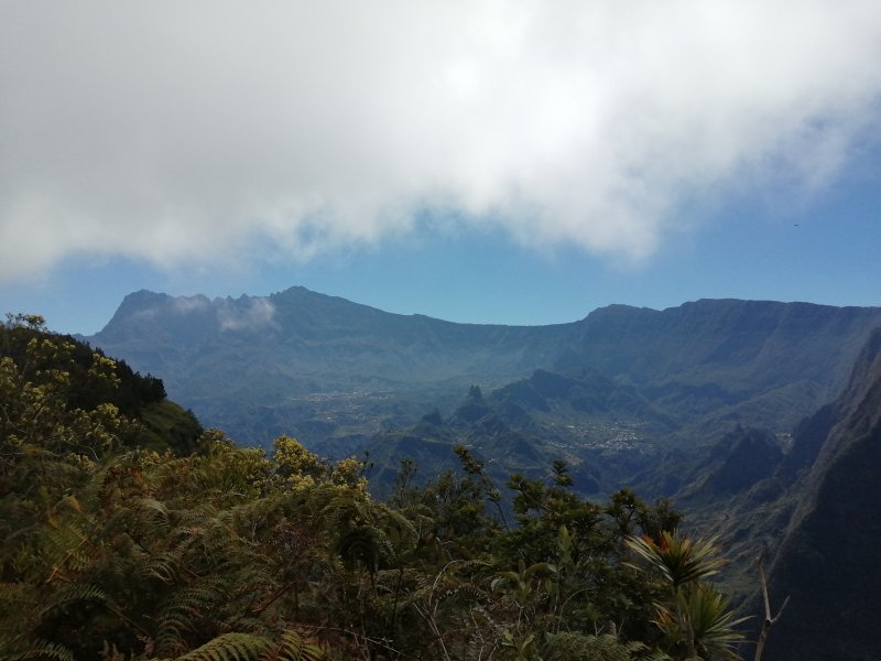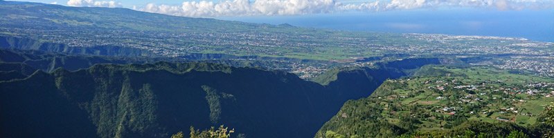 La randonnée débute ici près de la grande réserve d'eau du Gol les Hauts. Ce départ présente l'avantage d'effectuer la montée complète en début de boucle même s'il faut en faire une grande partie sur route. Le nombre de routes, rues ou raccourcis étant assez important, il est conseillé de suivre la trace à télécharger ci-dessous. On traverse plusieurs champs de canne à sucre ou de cultures diverses. Les chouchous sont omniprésents sur le bord de la route (Photo 5). Toutes les cases sont fleuries et les habitants rencontrés ne demandent qu'à discuter quelques minutes. Certaines portions sont assez raides et c'est penché vers l'avant que la montée s'effectue (Photo 1). Les panoramas sur la mer sont nombreux (Photo 3) ainsi que sur la Chaîne du Bois de Nèfles (Photo 4). Après un peu plus de 5 kilomètres, on trouve une piste partant sur la gauche qui se transforme très vite en sentier, envahi de hautes herbes (Photo 8). Heureusement, cet envahissement est de courte durée. Le sentier grimpe régulièrement sur des lacets, des marches ou portions terreuses. Les goyaviers prennent possession des sous-bois. Plus haut ils seront supplantés par les longoses qu'on ne quittera guère jusqu'aux Canots (Canaux sur certaines cartes). Plus on monte et plus les panoramas s'élargissent du Morne Langevin à l'horizon jusqu'à la côte très urbanisée (Photo 9). Sur la gauche on aperçoit la faille profonde la vallée du Bras de Cilaos. Les fougères, branles verts et quelques bois de couleurs réussissent encore à résister à l’envahisseur, mais pour combien de temps (Photo 11) ? Débutent alors les panoramas grandioses sur le cirque de Cilaos, le Dimitile ou la chaîne des Bénares (Photo 12). La descente débute à un oratoire en direction de la grande forêt de cryptomerias qui envahit une bonne partie du paysage et les flancs du Piton Cabris (Photo 19). On parvient rapidement à la forêt sombre où il fait presque nuit, surtout si les nuages sont en place (Photo 20). Le sentier, très discret qui part sur la droite file vers le Piton Cabris et la Fenêtre des Makes. Le cheminement s'effectue sur les racines des conifères jusqu'au croisement des sentiers venant du Bras Patates ou des Canots. Partir à gauche pour parvenir très vite à des zones cultivées et les quelques cases des petits agriculteurs de la Plaine du Bois de Nèfles (Photo 21). Les vastes étendues jadis recouvertes de cultures sont désormais d'immenses champs de vigne marronne ou longoses. On frôle la longue caverne de la ravine souterraine qui se rejoint par un court sentier végétalisé. Le sentier se poursuit vers une autre zone cultivée puis pénètre dans la forêt de bois de couleurs qui recouvre les remparts du Bras Patate coulant dans le bas. Le sentier, souvent boueux, est parfois envahi de vigne et de longoses mais ne se perd pas de vue (Photo 22). On entame alors une longue traversée sur les racines en effectuant souvent des petits montées et descentes jusqu'au croisement de deux sentiers (Photo 23). Celui de droite mène au Grand Serré et aux Canots en suivant la vallée du Bras Patate ; celui de gauche finit au même endroit mais en suivant le Bras des Chevrettes au milieu d'une belle forêt de bois de perroquets. La descente est parfois très abrupte et glissante sur des marches plus ou moins hautes. Il faut près d'une heure de marche dans cette forêt très sombre pour arriver à l'ancienne zone de pique-nique qui est désormais totalement abandonnée (Photo 24). Le village des Canots n'est qu'à quelques centaines de mètres et les coqs ou chiens se font entendre. Il est possible de partir à gauche à la première rue mais cette reconnaissance passe au plus près de la chapelle du village (Photo 25). La jonction avec le Gol les Hauts empruntera principalement la route. Il est très agréable de dénicher entre les maisons la ruelle qui coupe au travers en suivant la petite ravine, affluent du Bras des Chevrettes (Photo 26). Un autre raccourci intéressant se situe à la fin du Chemin du Bassin Pilon qui est une adorable petite route bordée de canne (Photo 27). Filer tout droit au croisement, descendre pour traverser le gué de la Ravine des Merles et poursuivre sur un sentier jusqu'au hameau Chemin Richard. Après 18 km de routes et sentiers, pourquoi ne pas terminer cette boucle par une courte escapade pour voir bassins, petites cascades et fond de galets en longeant au plus près la Ravine Richard avant d'arriver aux terrains de sport ? Le détour est minime et le retour au parking s'effectue encore par des pistes et sentiers de raccourcis (voir trace).