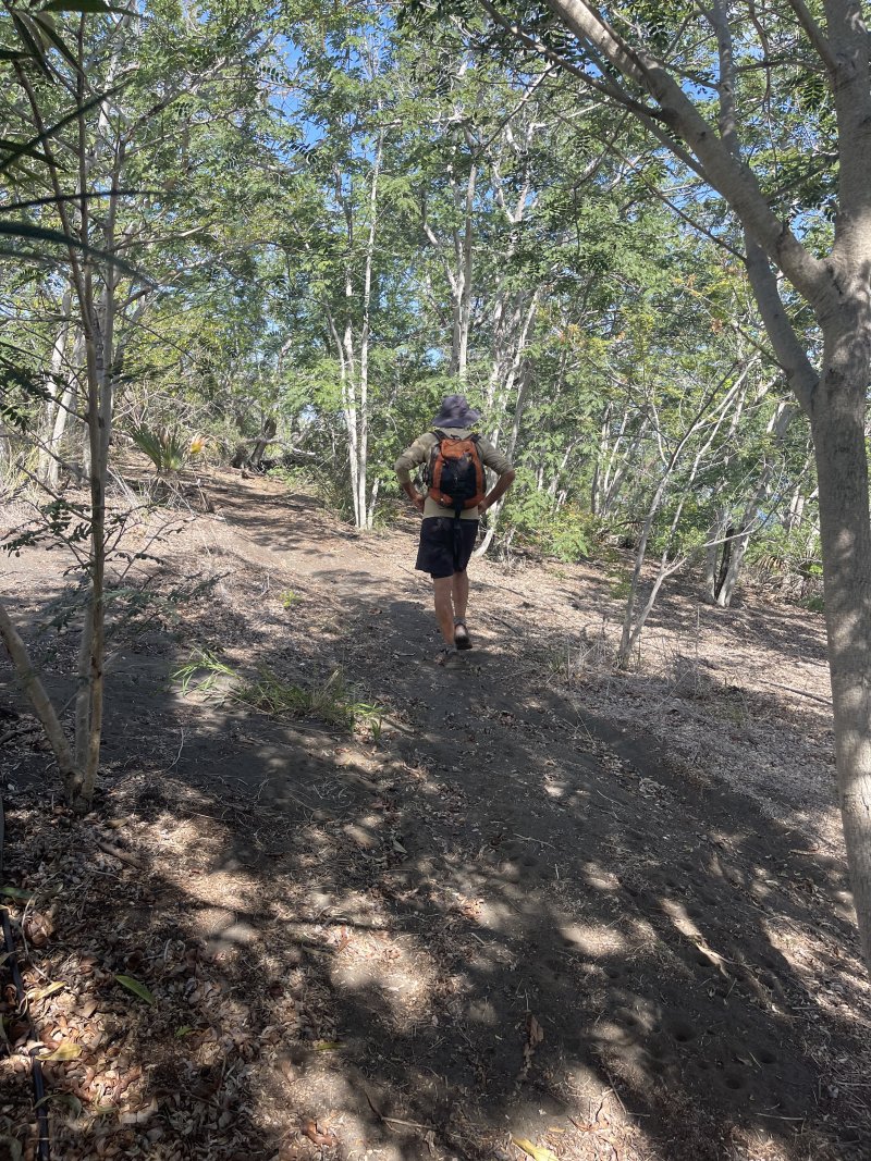 Plus haut après la grande ferme qui donne à voir des dizaines de taureaux et bovins enfermés dans une immense étable ouverte au vent on longe une grande prairie. Fort heureusement les galaberts et autres plantes du descriptif ont disparu. Le sentier longe simplement la prairie sans aucun soucis. Plus loin sur le chemin en ligne de crête on s'est régalé de goyaviers succulents.
