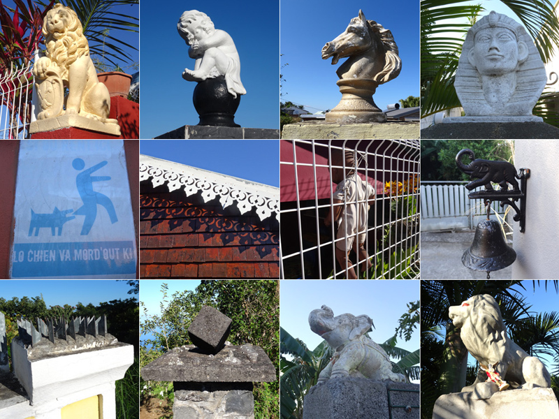 Tout le monde n'aime pas randonner en zone urbaine. Ici, certaines portions sont assez longues malgré toutes les petites ruelles qui éloignent des rues principales. Cette sortie permet de remarquer de très vieilles cases abandonnées jusqu'à de luxueuses demeures avec des vues splendides sur la montagne ou la mer. Voici une petite collection de chapeaux de piliers ou de détails d'architecture qui ne prennent qu'une minute d'observation et de photographie.
