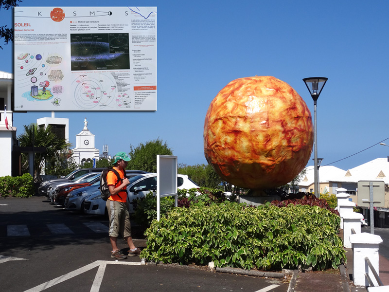 Initié et réalisé en partie par Xavier Daniel, un peintre réunionnais, le projet Kosmos se propose de présenter le soleil et ses 13 planètes à des échelles qui permettent à tous d'imaginer la taille et l'espacement entre ces planètes. A partir du soleil de 2,5 m de diamètre placé devant la mairie des Avirons, toutes les autres planètes sont dispersées dans la région, comme une immense maquette de 50 km de diamètre. Les curieux ou amateurs retrouveront Mercure, Vénus, la Terre, Mars ou Jupiter dans la ville des Avirons, Saturne à l'Etang Salé, Uranus à Stella Matutina, Neptune aux Makes, Pluton devant l'office du tourisme de l'Entre-Deux. Une pancarte est chaque fois installée à proximité pour donner quelques explications. Hélas, certaines planètes ont disparu du système par la bêtise de certains, car placées trop près de petits coins charmants comportant assez de bancs pour s'abreuver longuement. Ce projet autant artistique que scientifique et pédagogique, auquel ont participé des élèves de quelques écoles, a été soutenu par la Direction des Affaires culturelles de l'Océan Indien (DACOI) et le rectorat.