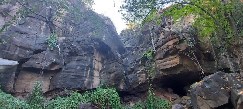 Plus loin, après une portion familière ( commune à une autre randonnée, avec la fameuse échelle) puis ensuite le petit sentier très visible, j'ai constaté que l'arrivée à Fonds de Puits est conforme à la description qu'en a faite Martial : pour le coup c'est Walking Dog qui rencontre Walking Dead !