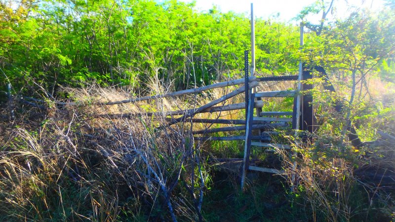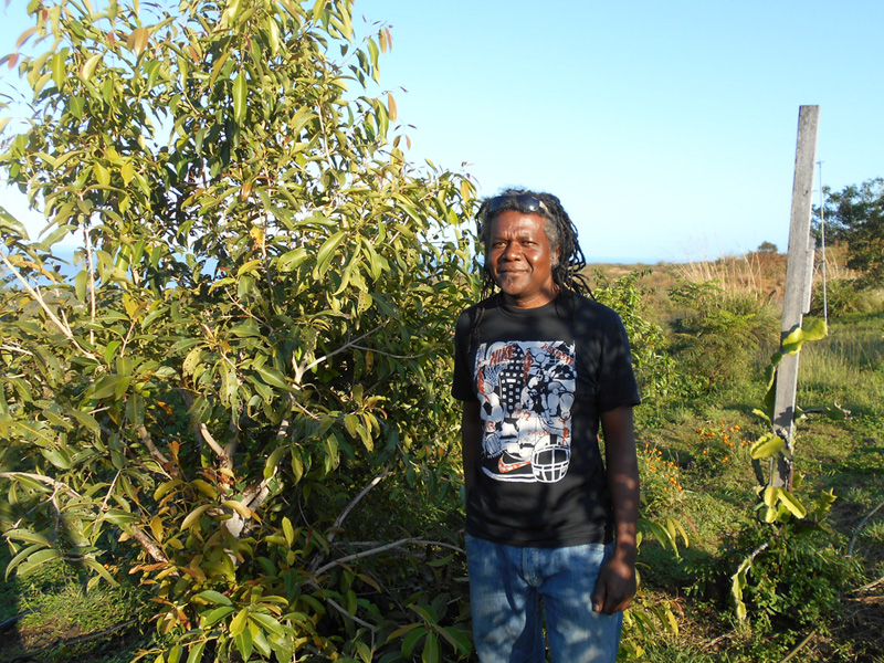 A 250 m de la route, en début de boucle, on est accueilli par les aboiements d'une demi-douzaine de chiens. Ils font un peu de bruit mais ne sont pas du tout méchants. On arrive chez Cyril JEAN JACQUES, un très sympathique agriculteur qui travaille la terre dans cette savane presque inculte. Il a planté là des arbres fruitiers "lontan", des plantes médicinales et beaucoup de pieds de pitayas. Il élève également quelques animaux de ferme et de basse-cour. Il a entamé un projet de longue haleine pour mettre en place une ferme pédagogique qui pourra recevoir des familles, des élèves, des curieux et pourquoi pas des randonneurs. Quand tout sera en place, un parking accueillera voitures et bus près d'une petite boutique où il compte commercialiser des produits de sa ferme (confitures, fruits, légumes, etc...). La rencontre avec ce passionné très accueillant est un pur plaisir. Souhaitons-lui beaucoup de courage. En lui téléphonant un ou deux jours avant, il organise même un repas "péi" où, comme il le dit, seule l'huile et le sel ne sont pas de sa ferme. Cyril 06 92 11 47 22.