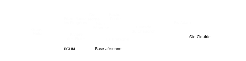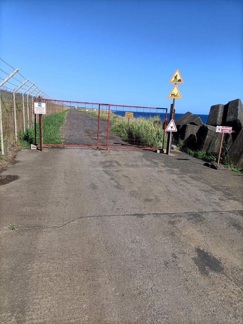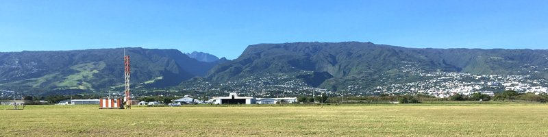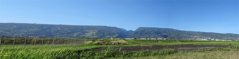 Quelle drôle d'idée d'aller randonner autour d'un aéroport ! L'expérience tentée à Pierrefonds n'était pas si désagréable malgré la chaleur, on y rencontrait déjà de nombreux coureurs qui s'entraînaient. A Gillot, beaucoup plus de personnes connaissent ce circuit depuis très longtemps et ce n'est pas ici qu'il faut venir chercher la solitude ou le silence car les routes principales ne sont jamais loin. En cumulant toutes les montées on a du mal à parvenir à 60 mètres répartis sur 12 kilomètres et, pour un peu, on pourrait même effectuer la boucle avec une poussette pour endormir bébé. Attention cependant au danger : si la route est de l'autre côté des murettes ou de la glissière de sécurité, les cyclistes arrivent parfois très vite et assez silencieusement. Il vaut mieux respecter le code et partager équitablement la piste en marchant sur le côté. Ne pas hésiter à effectuer quelques écarts pour visiter la chapelle tamoule et l'ancienne usine de la Mare ou le cimetière la Peste à la Jamaïque (voir § plus bas).
