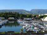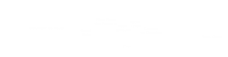 La randonnée débute près de l'aéroport ou d'immenses zones de stationnement se trouvent sur la droite dès l'arrivée au deuxième rond-point. La piste est facile à trouver car un passage piéton en marque le début. Nul besoin de réfléchir ni de se munir d'un GPS car le circuit est des plus instinctifs. Suivre simplement la piste cyclable qui passe parfois à moins de deux mètres de la RN1 (Photo 1). Un peu plus loin, les inconditionnels emprunteront le sentier ombragé ( très encombré de détritus) au niveau du rond-point de Duparc (Photo 2). La marche est extrêmement facile en très légère descente (Photo 3). Cet itinéraire, nommé sentier littoral nord, oblique sur la gauche en direction de la Mare qu'on repère à sa cheminée métallique. Guetter sur la gauche une courte piste qui rejoint en 50 mètres la chapelle tamoule de la Mare. Le temple est modeste mais il est très connu des fidèles qui s'y réunissent régulièrement (Photo 4). Outre le temple jaune et rouge, on peut y voir des frangipaniers décorés de colliers de fleurs séchées et une aire charbonnée, vestige de la dernière marche sur le feu. Une statue à l'avant représente Hanumān, le Dieu Singe, patron des lutteurs, dieu de la sagesse. Il est si fort qu'il peut soulever des montagnes comme le montre d'ailleurs son effigie. Rejoindre ensuite l'ancienne usine de la Mare réhabilitée en bureaux. La case créole, qui devait être le bâtiment de la direction de l'époque, est très bien conservée à l'ombre de ses grands palmiers royaux (Photo 8). Tout près, la grande grue qui servait au déchargement de la canne est restée sur place (Photo 7). Rejoindre le port de Sainte-Marie en empruntant une courte passerelle (Photo 9) et en suivant la petite route. Le port est important à en juger par le nombre de barques et bateaux de pêche qui sont à l'anneau (Photo 11). On profite à partir du port de larges panoramas sur les sommets dont le Cimendef et la Roche Ecrite que l'on verra jusqu'à la fin de la boucle (Photo 15). Débute une remontée des pistes de l'aéroport en longeant tout d'abord une route bétonnée bordée d'énormes plots en béton sensés protéger des vagues (Photo 12). Cette route extra plate se poursuit par une piste le long du grillage (Photo 16). Après les pluies, les ornières créent de larges flaques qui peuvent mouiller les pieds (Photo 17). L'astuce consiste à marcher dans les épineux qui bordent la piste ou à descendre sur la plage de galets à la recherche de bois flottés (Photo 18). Par temps sec, poursuivre sur la piste puisqu'on aura d'office une partie de plage de galets à la fin du grillage. Une centaine de mètres plus loin, on rejoint justement la fin du grillage de l'aéroport. Repérer, sur la droite après un bosquet, l'étroit sentier qui rejoint les galets. Une fois sur les galets, filer au plus près des vagues et marcher plus de 300 m, traverser plusieurs fois des bras étroits de la Rivière des pluies et repérer un cocotier et un bar en tôle. Obliquer vers la gauche 20 mètres après le cocotier et rejoindre la piste (Photo 20). A la saison, la traversée de la Rivière des Pluies est instructive lorsque les pêcheurs de bichiques installent leur matériel et ne sont pas avares en explications sur les méthodes de pêche (Photo 21). A la piste cyclable qu'on retrouve près de la voie rapide, prendre à gauche pour rejoindre le point de départ de la boucle. En empruntant le même type de piste qu'au départ, le cimetière la Peste ne se trouve qu'à un petit kilomètre sur la droite pour ceux qui voudront effectuer l'aller-retour (Photo 23). Ce minuscule cimetière se situe 100 m après le gué de la Ravine du Chaudron. Le retour à Gillot s'effectue rapidement, toujours sur des pistes cyclables de goudron rouge bordées de palmiers, flamboyants et autres arbres qui procurent de l'ombre (Photo 24). On rejoint la Rivière des Pluies enjambée par un large pont qui offre aux piétons et cyclistes la possibilité d'effectuer la traversée à l'ombre (Photo 25). Seule hésitation du parcours : prendre à droite à la sortie du pont pour marcher de l'autre côté de la RN1 et rejoindre l'aéroport en passant sous la route par un tunnel éclairé.