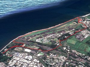 Se rendre à Saint-Denis et rejoindre l'aéroport Roland Garros - Stationner sur la Rue Hélène Boucher au deuxième rond-point - Débuter par la piste en direction de Sainte-Marie - Longer sans discontinuer la route principale passant devant Duparc - Bifurquer à gauche vers la Mare - Effectuer un écart vers la chapelle de la Mare puis un autre vers l'ancienne usine de la Mare - Rejoindre le port de Sainte-Marie puis monter sur la digue bétonnée - Longer l'océan sur la route bétonnée puis en terre un peu plus loin - Marcher jusqu'à l'estuaire de la Rivière des Pluies - Traverser la rivière et retrouver le sentier qui rejoint la piste traversant l'ancienne gravière et retrouver les pistes cyclables - Avant de rentrer vers Gillot, prendre à droite pour une visite au cimetière la Peste - Rebrousser chemin et rejoindre le pont qui enjambe la Rivière des Pluies - Terminer par la piste jusqu'au point de départ.