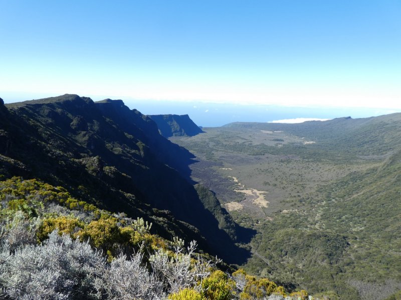 Balade bien agréable ,facile et sans difficultés. Départ à 8 heures avec des lumières encore douces et quasiment pas de fraîcheur matinale ! Quand on vient de loin, l'arrivée au Bois Ozoux est déjà une récompense en soi, tellement l'endroit est joli et paisible.Puis rapidement, on enchaîne les grands panoramas (côte Est, côte Ouest, Plaine des Cafres, Piton des Neiges), avant d'arriver à l'oratoire Ste-Thérèse pour le superbe point de vue sur le Fond de la Rivière de l'Est . Je n'ai pas résisté longtemps à l'envie de poursuivre vers le Plateau des Basaltes ... et voilà comment on se retrouve de fil en aiguille au beau milieu de la Plaine des Sables !! J'avais oublié combien cette partie du GRR2 est belle et le mot est faible ! Un véritable "bonus" sur cette sortie avec un sentier assez technique (sans trop) comparé à ceux de l'itinéraire présenté et quelques à-pics (la rando 1062 du site intègre ce sentier ). Une bien belle sortie à faire par beau temps.