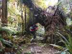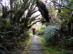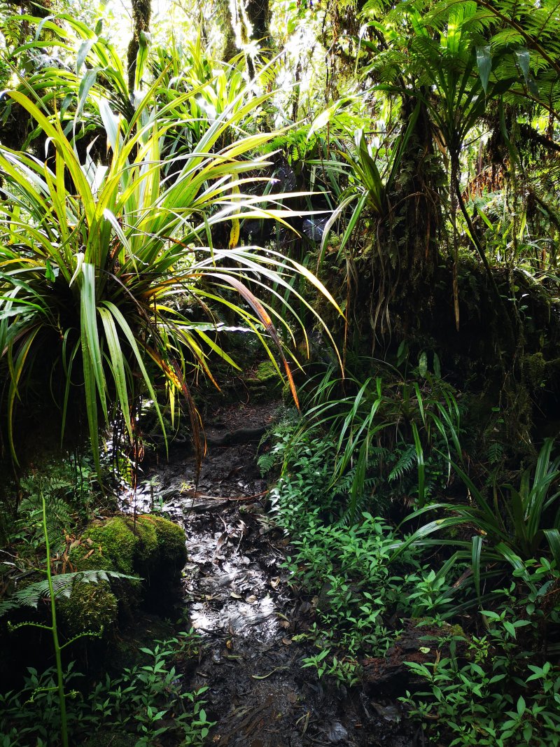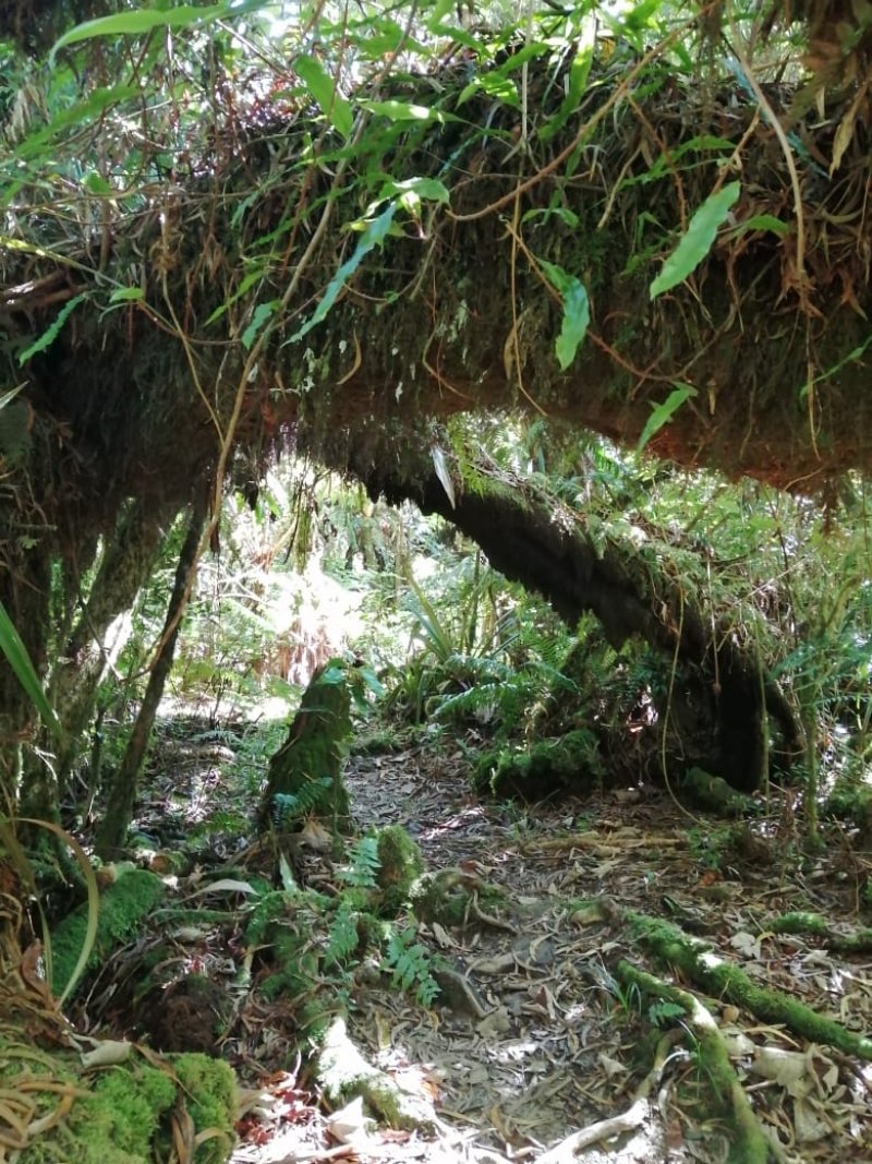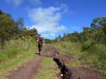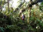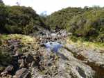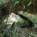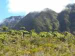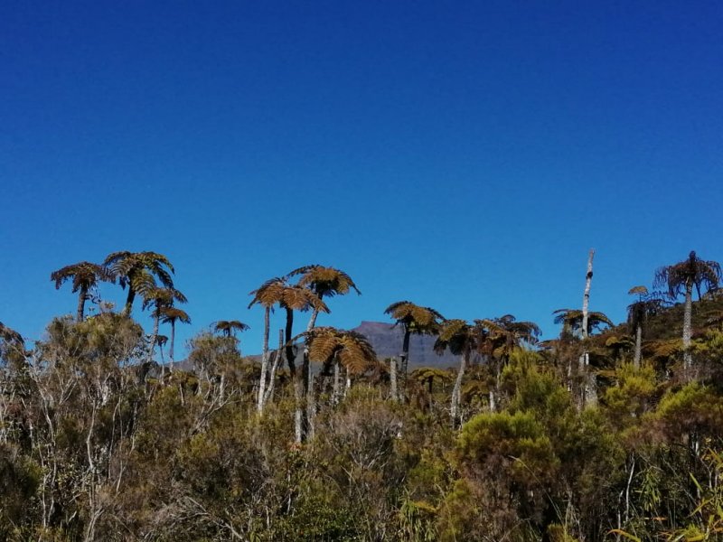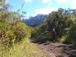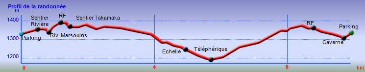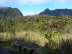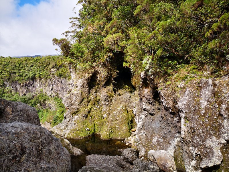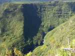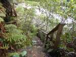 La randonnée débute à deux pas de la Rivière des Marsouins où un parking a été conservé juste avant de parvenir au pont. Ces lieux de stationnement sont devenus tellement rares qu'il faut savoir où l'on va afin d'éviter de trop marcher pour débuter une randonnée. Les aires de pique-nique ont été supprimées il y a quelques années et des centaines de plots de sapin empêchent tout stationnement sauvage. Marcher sur le goudron en direction du Col de Bébour sur environ 1300 mètres avant de rencontrer le départ du sentier de la Rivière (Photo 1). Ce sentier humide et moussu est un raccourci pour éviter les nombreux lacets de la route. Il débute à plat et le restera jusqu'au franchissement de la Rivière des Marsouins. Les portions les plus boueuses comportent des planchers un peu vermoulus et glissants (Photo 2) ou de grosses bûches qui permettent de garder les pieds au sec (Photo 3). Ces 300 mètres de sentier étroit mais très agréable au milieu de la forêt primaire de Bébour donnent envie de poursuivre bientôt par celui de Takamaka. Il faut auparavant traverser un petit ruisseau puis rejoindre le lit de la rivière par une volée de marches et quelques lacets (Photo 4). Le lit est surtout composé de grosses pierres mal dégrossies et humides et le sentier se devine en rive gauche, en face du point d'arrivée à la berge. En amont, on entend autant que l'on voit la petite cascade alimentant un bassin qui se rejoint en cinq minutes (Photo 5). Eviter ce court écart avec des enfants, ainsi que la baignade qui pourrait être tentante mais qui est également déconseillée . Le sentier de la Rivière se poursuit en forte montée où certaines marches dépassent les 50 cm (Photo 6). On retrouve les mêmes bois de couleurs que sur l'autre rive ainsi que les mousses et épiphytes. On parvient très vite au goudron. Prendre à droite et marcher quelques centaines de mètres jusqu'au sentier de Takamaka, impossible à manquer (Photo 7). Ce sentier représente tout ce que l'on aime ou tout ce que l'on déteste mais jamais on n'entend un randonneur se plaindre d'avoir traversé cette forêt. Pendant 90 minutes, on va serpenter au gré du relief, slalomer entre les monstrueuses fougères arborescentes, passer de petites ravines, sauter des troncs tombés au sol, se baisser pour passer sous les arches végétales, s'enfoncer dans la boue ou l'éviter par des planchers. Les montées sont faibles tout comme les descentes et c'est sans aucune fatigue qu'on effectue la traversée. Le sentier est bordé d'ananas et de cannes marronnes, de troncs moussus, de jouvences et de magnifiques bégonias diadema qu'on ose à peine effleurer de peur de les casser. Les oiseaux sont un peu plus rares que sur le bord de la route mais les merles se font entendre à chaque sous-bois. Après avoir franchi un affluent de la Rivière des Marsouins et passé une échelle en aluminium, on s'approche de la fin du sentier. On rencontre le croisement vers l'usine de Takamaka, souvent fermé et déconseillé aux familles. Prendre alors à droite et terminer dans l'herbe pour nettoyer les semelles sur une centaine de mètres (Photo 17). Le sentier se termine définitivement à la piste de Takamaka, dans les branles verts et hauts fanjans avec de magnifiques vues sur les remparts entourant la Rivière des Marsouins (Photo 18). Partir sur la gauche pour profiter du magnifique point de vue sur la vallée, le barrage et les petites cascades qui l'alimentent (Photo 19). En se penchant un peu, on aperçoit d'autres chutes tomber dans le petit lac qui sert de réserve à l'usine installée 300 m sous terre à 4 kilomètres en aval. Tout près du belvédère dévoré par les herbes, les installations d'EDF abritent des petits bâtiments et le téléphérique employé par les agents (Photo 20). C'est en se penchant à nouveau qu'on les envie lorsqu'ils se rendent au travail ! La piste débute par quelques ornières en face d'une ancienne piste qui abrite des ruches (Photo 21). La boucle est presque finie. Prendre tout son temps pour repérer les essences variées de plantes qui bordent la piste (Photo 22). Ne pas manquer non plus les lointaines vues sur le Piton des Neiges ou les autres pitons dépassant à l'horizon (Photo 24). C'est après une montée régulière qui alterne sable, cailloux, goudron ou herbe (Photo 24) que l'on parvient à la barrière qui interdit l'accès de la piste aux véhicules (Photo 25). La fin de la boucle s'effectue sur route, assez peu fréquentée, qui permet de marcher moins d'un km dans un cadre très agréable (Photo 26). Si l'heure ou la météo le permettent, chercher en rive droite de la Rivière des Marsouins, juste après le pont qui la franchit, le passage qui permet d'atteindre la berge rocheuse. Rejoindre le cassé en aval en préférant la rive gauche, plus facile d'accès (Photo 27). La rivière, calme à ce stade, se précipite d'une bonne centaine de mètres dans le vide à quelques mètres de la caverne des Hirondelles (Photo 28). En essayant de ne pas gêner les dizaines de salanganes qui volent pour entrer et sortir de la grande grotte, il est possible de s'en approcher et d'y pénétrer. Remarquer, en haut de la cascade les cordes fixées par les canyonistes qui effectuent les descentes au bout de leurs longues cordes. Le véhicule est situé à une cinquantaine de mètres du pont.