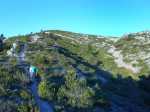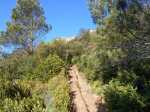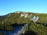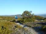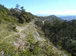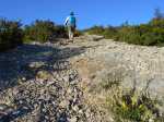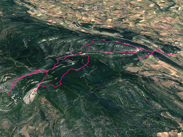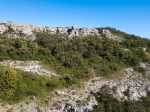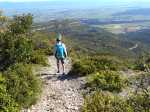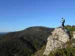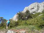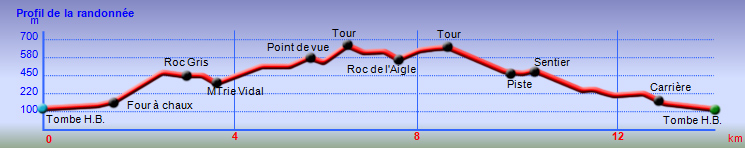 La randonnée débute ici à la chapelle (Photo 1) mais un grand emplacement de stationnement se situe aussitôt après avoir franchi l'autoroute en partant quelques mètres sur la gauche près d'une réserve d'eau pour l'incendie. Partir sur la piste en faible montée et rejoindre les bâtiments du Four à Chaux en prenant à droite à la fourche des trois pistes. Laisser les bâtiments puis continuer sur la piste dans les genêts et la garrigue (Photo 2). Ne pas manquer, 200 mètres plus loin le sentier qui part sur la droite et grimpe, toujours dans les genêts vers le rempart de calcaire qu'on aperçoit sur la droite (Photo 3). Il chemine tout d'abord à plat puis monte assez fortement sur une importante couche de petits cailloux qui roulent sous le pied. On atteint le bord du petit rempart longé par le sentier qui part à gauche en direction du Roc Gris (Photo 4). Le cheminement ne pose pas de difficulté hormis ces zones très caillouteuses (Photo 5). Plus on monte et plus les panoramas grandissent sur la région de vignoble, de forêts de résineux et de brandes (Photo 6). On atteint le Roc Gris rapidement pour profiter d'une vue splendide sur le Mont Alaric qu'on atteindra bientôt (Photo 7). On appelle également ce roc le Saut de Roland et la légende dit qu'il aurait sauté d'ici avec son cheval en direction du Pic de Nore à 20 km à vol d'oiseau !! On peut effectivement sauter de ce rocher mais on tombe en général au pied du roc vertical (Photo 8) ! Poursuivre le long du rempart dans une végétation qui a beaucoup de mal à survivre dans cette région très battue par les vents forts (Photo 9). Plusieurs sentiers traversent ces landes d'altitude mais le principal est aisé à suivre. Partir sur la gauche à une clairière ressemblant à une prairie et trouver la brèche, le départ de l'étroit sentier qui descend vers la Métairie Vidal. Les premiers mètres semblent acrobatiques mais se passent sans danger (Photo 10). On parvient, après une courte mais forte descente aux ruines de la métairie abandonnée sous les arbres au pied de la falaise calcaire (Photo 11). Emprunter le GR77 qui traverse l'ancienne ferme et partir sur une courte distance vers le sud. Continuer vers la Métairie Sans Fin en montée constante. On coupe la piste montant à la tour de gué avant de parvenir aux mares isolées de la métairie (Photo 12). Partir vers la droite en passant dans les ruines de cette ancienne fermette et près d'une nouvelle mare où l'on remarque de nombreuses traces de sangliers qui viennent ici se rafraîchir. Le sentier est de plus en plus étroit mais ne se perd jamais dans la végétation (Photo 14). Plus on grimpe et plus les falaises se remarquent à travers les branches de pins ou de chênes (Photo 15). Elles semblent infranchissables mais il suffit de les contourner pour retrouver le sentier qui grimpe au Signal d'Alaric (Photo 16). Avant d'entamer cette montée, partir vers le rocher qui domine le plateau (Photo 17). Il s'atteint en deux minutes mais vaut le détour pour les paysages qu'il propose. On est presque à mi-chemin et ce promontoire est le lieu idéal pour la pause, à moins qu'un vent à décorner les bœufs ne fasse envoler le sac et ses provisions. On aperçoit au loin les Pyrénées et on domine le village de Camplomg-d'Aude. On devine le GR36 qui descend dans la vallée de la Combe d'Alaric (Photo 19). Il est proposé ici d'en effectuer un court tronçon pour se rendre au Roc de l'Aigle. Après cet agréable repos, reprendre vers la falaise et la contourner par la gauche pour entamer la courte montée vers l'antenne qu'on remarque au loin (Photo 20). Le Signal d'Alaric se rejoint rapidement. Avant de poursuivre vers Moux, oser un écart sur le GR36 jusqu'au Roc de l'Aigle. Le haut de la falaise est superbe avec des fleurs de toutes les couleurs, des aromatiques sauvages et des sédums qui ont pourtant beaucoup de mal à vivre sur cette rocaille aride (Photo 21). Plus bas, vers le Roc de l'Aigle, le GR est large, caillouteux et en légère descente au début. Admirer de nouveaux panoramas sur les Pyrénées, enneigées une bonne partie de l'année (Photo 22). Profiter des multiples traces dans la garrigue pour remonter au mirador. Près de ce lieu d'observation récent trône une cabane en pierre qui devait sans doute servir de poste d’observation incendie (Photo 23). Retrouver le GR77 pour entamer la descente vers Moux qu'on aperçoit vers l'autoroute. Il y a peu de panneaux ou de balisage mais on a vite fait de le repérer aux couleurs habituelles des GR. On a sous les yeux la chaîne qu'on a dominée en venant par le Roc Gris (Photo 24). Après une descente caillouteuse dans une végétation très touffue, on longe à mi-rempart un plateau qui domine un affluent du Ruisseau des Baux (Photo 25). On parvient à la piste tortueuse qui monte au signal. La suivre sur environ 400 mètres jusqu'à un virage à gauche. Un panneau donnant la direction de Moux rassure sur la direction à emprunter. Débute une longue descente sur un sentier caillouteux, rectiligne qui se moque des courbes de niveaux et bordé un peu partout de miradors de chasse au sanglier. La vue s'étend jusqu'au Pic de Nore et on distingue très bien l'autoroute des deux Mers entre Carcassonne et Lézignan. A 285 m, tourner à droite et partir vers l'est, sur le sentier parallèle à l'autoroute. Plusieurs embranchements peuvent créer des hésitations mais il suffit de suivre le sentier qui paraît le plus fréquenté. Il effectue parfois quelques montées et descentes successives mais c'est facilement qu'on rejoint en sous-bois la grande carrière abandonnée d'extraction du calcaire (Photo 28). Le sentier se transforme en piste en descente douce jusqu'à la petite route empruntée en début de boucle. Partir à gauche, passer sous l'autoroute et rejoindre le tombeau d'Henri Bataille.