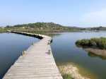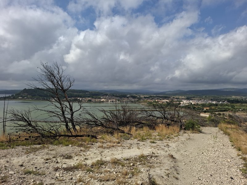 Tout près de Narbonne, entre l'étang de Bages-Sigean et la terre, demeure une petite étendue d'eau salée uniquement alimentée par les eaux de ruissellement. La communication des deux lagunes qui subsistent avec le large s'effectue par un petit canal artificiel. Une lagune, celle que l'on contourne par cette courte balade, a longtemps été utilisée comme saline. L'autre, l'Etang du Doul, d'une superficie de 37 hectares, se visite également par un sentier qui en fait le tour en escaladant le Roc de Berrière qui culmine à ... 72 m ! L'hyperhalinité de cet étang fait de lui le plus salé de la région, voire du territoire français. Toute activité ayant cessé dans la récolte du sel, les deux lagunes sont désormais classées comme réserve ornithologique. On a d'ailleurs la chance de pouvoir repérer toute la faune aquatique habituelle des bordures d'étangs et l'on rencontre souvent des flamands roses et même des cigognes. La boucle est tellement plate, facile et bien aménagée qu'ont pourrait certainement l'effectuer aisément en fauteuil roulant.
