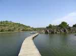 La randonnée débute à la Rue des Salins, près d'une aire de jeux pour enfants. Longer l'étang en marchant vers le nord jusqu'à un panneau explicatif sur la saline, l'étang et le village de Peyriac (Photo 1). Se diriger vers la saline à la fin du parking et débuter la balade sur un long ponton en bois qui domine l'eau de quelques dizaines de cm (Photo 2). L'eau n'est guère transparent ni très profonde. On laisse quelques bandes de terre recouvertes d'une végétation très typique de cette région (Photo 3). Difficile de faire plus facile comme marche sur un plancher de bonne qualité et totalement plat (Photo 4). Des pancartes ça et là donnent de précieux renseignements sur le milieu (Photo 5). Le plancher est parfois remplacé par des digues en terre, toutes aussi plates que les planchers (Photo 8). En face, du côté de l'Îlette, commencent les première pentes du Roc de Berrière qu'on peut facilement atteindre ou longer si on quitte les pontons (Photo 1). Dans un agréable cadre de verdure subsiste une petite cabane en pierre qui servait d'abri au douanier (Photo 10). Il faut parfois franchir de courtes passerelles surplombant de minuscules canaux qui maintiennent le niveau de l'eau (Photo 13). On s'approche d'une minuscule colline dominant l'eau de ses 21 mètres en marchant sur le plus beau ponton de la boucle qui ondule sur la saline (Photo 14). En se retournant, on embrasse d'un seul regard le village de Peyriac-de-Mer (Photo 15). La montée à la colline prend moins d'une minute et permet de mieux distinguer les lieux, les pontons, canaux et l'étang du Doul sur la gauche (Photo 17). On remarque également mieux les murailles de l'espèce de cratère qui entoure l'étang d'origine tectonique (Photo 18). Plusieurs sentiers bordés de petits pins parcourent les berges (Photo 19). Marcher alors plein sud après avoir utilisé une montée pour rejoindre l'autre côté de la colline. On se retrouve sur une petite route étroite et très agréable qui se termine à un croisement vers la colline du Mour (60 m). L'endroit est plus vert que le circuit déjà effectué (Photo 20). Un chemin existe également entre la route et la saline (Photo 21). On se retrouve sur une route plus fréquentée entre le Sel Fort et l'Etang de Peyrac-de-Mer. On retrouve des cabanes en pierre ayant abrité des pompes chargées de réguler le niveau de l'eau de la saline (Photo 23). Cette petite route s'achève au début du village. Prendre à gauche et longer l'eau au plus près en direction de l'aire de jeu repérée au départ.
