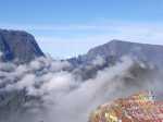 Ce hors sentier "officiel" et les hors sentiers "tout court" méritent de sillonner un peu plus à fond la planèze des Chicots au lieu de se contenter comme beaucoup d'aller contempler au plus vite, avant les nuages, le cirque de Salazie depuis la Roche Ecrite.La rando est longue et si vous ne résidez pas dans le Nord, il faudra rajouter des heures pénibles de trajet. Donc fait ce jour avec une sympathique halte repas+nuit au gîte de la plaine des Chicots. Les bus Citalis 12 et 12a -depuis St Denis- permettent aussi d'éviter la longue et fastidieuse montée à Mamode Camp avec de multiples lacets en épingle à cheveux. Dans ce cas, rajouter un petit 1,5 km de plus puisque le terminus du bus est à Valfleuri un peu plus bas que Mamode Camp. Montée au gîte en 2h dans une forêt primaire de plus en plus belle,plus on monte en altitude, sûrement pour récompenser des efforts fournis: forêt de calumets et de tamarins sous un brouillard et une brume fantasmagorique donnent une tonalité étrange au parcours. Poussé avant la nuit une 1/2 h vers Dos d'Ane par la Caverne Basse et jusqu'au point de vue évidemment inexistant sur Mafate. Le lendemain matin, rebelote: brouillard et brume auxquels s'ajoutent pluie (fine, heureusement) vent et froid! Le ressenti est d'environ 2° mais je suis là pour ça et il en faudrait beaucoup plus pour reculer. Hors sentier jusqu'aux Pitons Plats au milieu d'océans de barbe de Jupiter du plus bel effet-rien de difficile au milieu des branles, ambavilles en se méfiant malgré tout du brouillard.Ecarts vers la Caverne Dufour puis la Mare aux Cerfs et jusqu'au point de vue évidemment inexistant sur Mafate. Errements sur les grandes dalles de basaltes vers la Caverne Soldats toujours dans une végétation assez basse mais suffisamment assez haute pour mouiller pas mal le short et le k- way déjà de rigueur depuis le départ.Je néglige le classique sentier vers la Roche Ecrite en plein brouillard et redescend pour espérer un peu moins de pluie et de froid et trouver, après l'avoir longuement visualiser à la maison le petit "passage secret" de la photo 23. Trouvé! et, ô miracle la brume se déchire et un timide soleil me permet de photographier enfin le panorama sur Mafate où il me semble reconnaitre les ilets des Orangers et Lataniers. La belle récompense du jour....La descente vers Mamode Camp est glissante, la terre ocre et boueuse est plutôt "casse gueule" . Je cherche le sentier vu sur la carte IGN au point 1440 ,bien repéré par Ousarsph2 (le 22/06/19) ; je m'avance dans diverses ramifications à dr et à g:certaines ne vont pas loin :ce sont des écarts de toilettes ou mieux des postes de dératisation; d'autres semblent aller je ne sais où mais pas vu les barbelés qui m'auraient rassuré...? Plus de batterie à mon téléphone et GPS ce qui n'arrange pas Toujours le crachin mais moins de vent et moins de froid.Parmi mes objectifs du jour: apercevoir des tuit tuit, (même pas trouvé le pluriel: tuit-tuits??) ce que je savais bien encore plus difficile que de gagner une grosse somme au Loto !!! -35 couples sur l'île-mais peut-être au moins photographier un cerf de Java: raté! et même pas vu les fameuses fumées . Au total ce 2è jour 7 heures merveilleuses au milieu de grandes solitudes jamais angoissantes. A part la longueur de la rando et les difficultés atmosphériques, rien de bien difficile surtout si vous vous permettez le luxe de dégager 2 jours de votre emploi du temps pour cette rando que je recommande vivement et qui par beau temps doit être tout simplement superbe (Sophie M. 22/06/19).