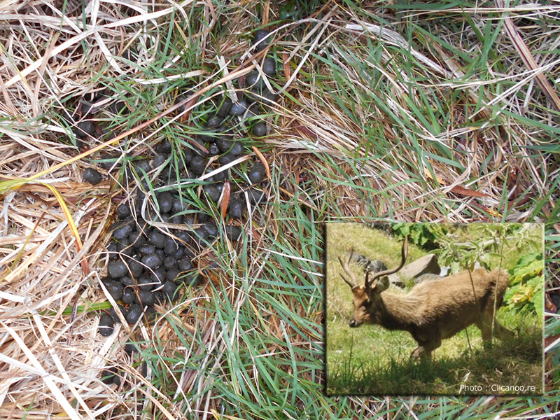 Ils sont une bonne centaine à parcourir la planèze de la Roche Ecrite mais, même en y passant souvent, on a peu de chances d'en rencontrer, à moins de marcher tôt (ou tard), seul et sans faire de bruit. En revanche, en sortant un peu du trajet officiel comme ici pour parcourir des sentiers officieux, on tombe souvent sur des fumées, nom donné à leurs crottes. Chaque année, des chasseurs viennent dans une zone règlementée pour abattre une quinzaine de ces animaux afin de réguler leur population qui comptait plusieurs centaines de têtes dans les années 70. On demande au randonneur de ne pas quitter le sentier afin de ne pas déranger le tuit-tuit mais on tolère facilement une dizaine de rabatteurs et autant de chasseurs sur le même territoire ! Le lobby des uns serait-il plus puissant que celui des autres ? Attention entre début juin et novembre de ne pas tomber dans la ligne de mire d'un de ces "Régulateurs de la nature". On rapporte même la présence de chasseurs à l'arc.