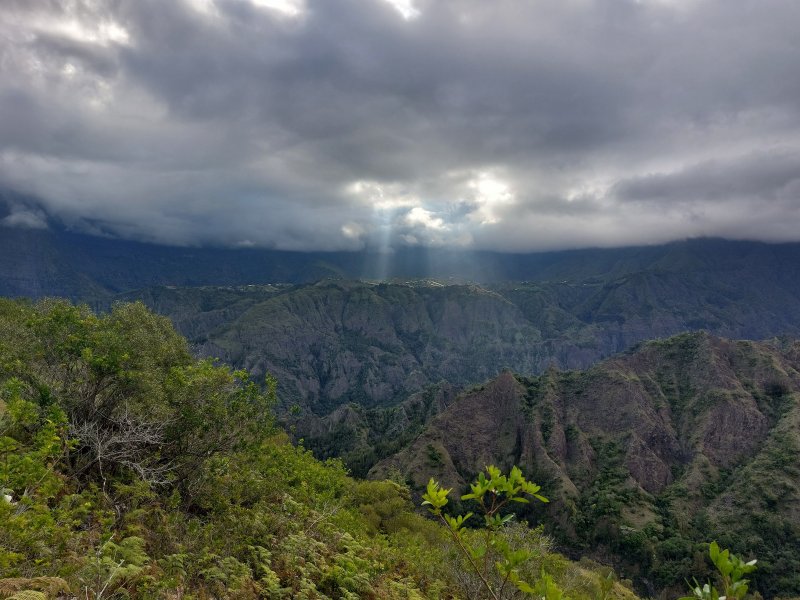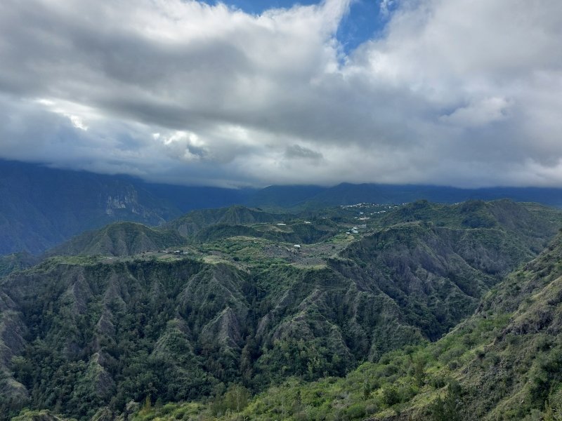 Beau point de vue à l'Ilet fougère, légèrement caché par les hautes herbes au début. Le cheminement jusqu'au col du piton Papangue comme dit plus bas est sans risque avec un beau panorama, vert en cette saison. (Bien traverser la mini ravine et non la remonter..)