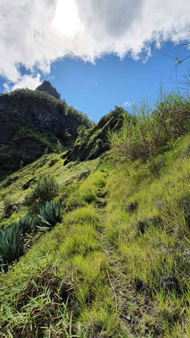 Ceux qui veulent quand même avoir un fabuleux points de vue, peuvent cependant, monter jusqu'au col du piton Papangue, et faire demi tour, pour le coup, il n'y à jusque là aucun risque.