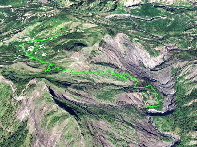 Descendus une quinzaine de minutes après le sommet en fin d'aprem aujourd'hui. , Le sentier est encore en bon état, surtout côté Nord comme précisé. Etant seul, et vu l'heure je l'ai pas continué longtemps. Il y a un petit eboulis vers le debut du sentier, mais au dessus de la ravine, 3- 4 m d'à pic, rien de mechant, mais à passer avec prudence quand même.