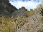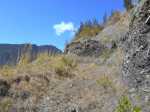 Le passage d'un 1er éboulis peut donner quelques sueurs froides, mais comme il est précisé dans l'encart rouge en début de fiche, le sentier est fermé et chacun prend ses responsabilités. La tête de mort dans les pictogrammes vient nous rappeler que ce n'est pas une sortie à mettre entre toutes les baskets.