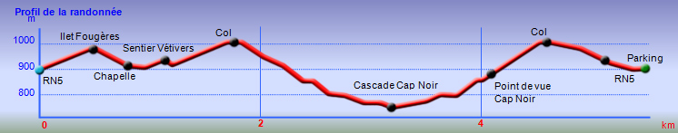 Se rendre dans le Cirque de Cilaos à partir de La Rivière - Rouler jusqu'à Peter Both et stationner dans le village - Remonter le Chemin des Pamplemousses qui passe devant la chapelle - Dans le virage à droite, emprunter le sentier qui remonte vers l'Îlet Fougères pour profiter des paysages puis redescendre vers le point de départ - Bifurquer à gauche sur le Sentier Vétiver, goudronné puis en sentier jusqu'à la RN5 - Marcher en direction de Cilaos jusqu'au point de départ du sentier (fermé) de Cap Noir - Remonter jusqu'au col puis descendre en lacets jusqu'à la forêt de filaos qui domine le Bras de Benjoin- Poursuivre ou non jusqu'au point de vue sur la cascade en prenant garde aux éboulis - Faire demi-tour jusqu'à la route de Cilaos - Rejoindre le véhicule en suivant cette route.