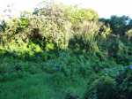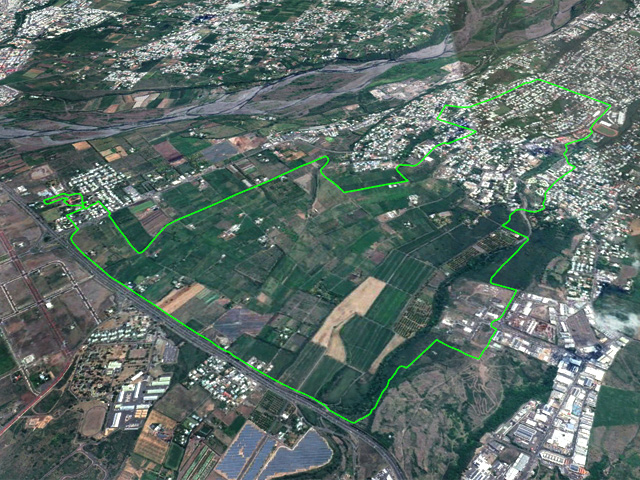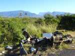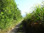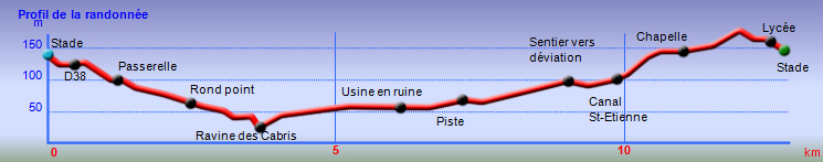 La randonnée débute au terrain de sport de Bois d'Olives où quelques places de stationnement se situent près des petits commerces. Marcher quelques mètres sur la Rue Baba Selly puis bifurquer sur le sentier qui traverse un semblant de parc arboré, peu entretenu mais éclairé ! (Photo 1). On profite des premiers rayons de la journée qui éclairent les cirques et les pitons qui les entourent (Photo 2). Le sentier se termine à la RD 38 à quelques pas du pont enjambant la Ravine des Cabris. Cette ravine, uniquement en eau durant les cyclones, a le fond couvert de verdure et se prête peu à des balades hors sentier (Photo 3). Marcher vers Saint-Pierre et bifurquer aussitôt sur le Chemin Palma, une rue très calme de Bois d'Olives qui descend en pente douce vers les ruines du Canal Saint-Etienne (Photo 5). Cet ancien canal qui alimentait Saint-Pierre a été totalement abandonné mais un sentier qui en longe une partie sillonne entre nature et habitations (Photo 6). On se retrouve à nouveau à la Ravine des Cabris qu'on franchit sur une passerelle (Photo 7). Le fond est déjà plus rocheux qu'en amont avec toujours les mêmes panoramas sur le Gros Morne qu'on ne quittera pas de la matinée (Photo 8). Le sentier longeant le canal se poursuit encore sur un bon kilomètre. Il est parcouru par le trail mais abandonné pour cette boucle. Aussitôt la passerelle franchie, trouver le sentier qui démarre à gauche. Il est emprunté par les joggers qui s'entraînent vers le circuit de motocross de Saint-Pierre. Il traverse presque à plat une grande étendue couverte d'acacias, épineux et grandes herbes (Photo 9). Il se termine à une rue bordée d'arbres qu'on évite pour partir à gauche sur une piste plus large mais également herbeuse (Photo 10). On se retrouve à marcher dans une forêt inextricable de jeunes acacias, le long d'un petit canal envahi par les plantes et les feuilles (Photo 11). La piste se transforme en sentier pour franchir la Ravine des Cabris puis on parvient dans une zone industrielle et commerciale qui ronge chaque année la forêt d'acacias (Photo 12). La piste, toujours présente sur la carte, est devenue une route goudronnée et c'est sur un large trottoir que se poursuit la boucle. Au premier rond-point, contourner et prendre à droite, longer un grand bâtiment puis retrouver une piste fréquentée par les coureurs à deux pas du circuit de motocross. On peut poursuivre tout droit en direction de la station service proche de la RN1. Pourtant, la piste partant sur la droite est plus agréable dans son écrin de verdure (Photo 13). A l'approche de la Ravine des Cabris, elle oblique sur la gauche et se poursuit dans le même type de végétation (Photo 14). Plus loin, les acacias sont remplacés par des chocas et des tamarins dont les fruits pendent au bout d'un long pédoncule. Les branches couchées par le vent ont été taillées pour créer un tunnel végétal (Photo 15). Le bruit de la circulation grossit de plus en plus lorsque l'on arrive à la petite route qui longe la voie rapide. Cette route étroite permet cependant le passage des camions qui viennent ici déverser impunément leur contenu créant des panoramas bien différents de ceux observés au départ (Photo 16). Les caméras sont présentes partout le long de la RN1. Si l'une d'entre elles était orientée sur cette petite route, il y a de fortes chances que la pollution diminuerait mais qui prendra un jour une telle décision ? C'est parti pour deux km durant lesquels le bruit ne cessera pas car, même la nuit, cette RN1 est toujours encombrée, donc bruyante (Photo 17). Curieusement, cette région sèche et surchauffée où aucun bovin ne paisse, est surtout recouverte de prairies régulièrement fauchées (Photo 18). Après avoir frôlé des oratoires différents mais complémentaires (Photo 19), on aperçoit au loin une vieille cheminée du côté de Pierrefonds qu'on rejoint en quelques minutes (Photo 20). Attention à la circulation pour traverser la route et rejoindre ce village coincé entre la Rivière St-Etienne, la RN1 et les champs de canne. Emprunter n'importe quelle rue et se diriger vers l'ancienne usine qui tombe en ruine et occupe une très grande superficie. Certaines dépendances ont été rénovées et sont occupées tandis que le corps principal de l'unité de production plie sous le poids de la rouille (Photo 22). Deux énormes grues de déchargement vieillissent également (Photo 21). Ne pas manquer au retour l'église sur la gauche qui ressemble plus à un magasin à sucre qu'à un édifice religieux. Seule la croix permet de la deviner dans son écrin de verdure. Regagner et traverser la D26 et partir dans les cannes pour retrouver la campagne. Paradoxalement, la circulation sur cette piste existe et il faut en tenir compte. Après un grand virage vers la gauche, on se rapproche de Bois d'Olives dans un paysage calme et verdoyant sur une piste reposante (Photo 23). Les prairies se multiplient avant d'être remplacées par de la canne à sucre et des palmeraies (Photo 24). La fin du parcours campagnard retrouve les acacias et savane du départ (Photo 25). Après avoir franchi le Canal St-Etienne sans trop le voir puis longé le collège, on rejoint la RD38 par le Chemin Vilris. Le parcours officiel du trail urbain file sur la gauche vers la chapelle qui se délabre d'année en année et ne résistera pas au prochain cyclone (Photo 27). Les puristes suivront tour à tour l'Allée des Bois Noirs, le Chemin Bancoule puis le Chemin de la Ligne d'Equerre avant d'arriver au lycée (Photo 28). Le terrain de sport, fin de la boucle, est à une centaine de mètres.