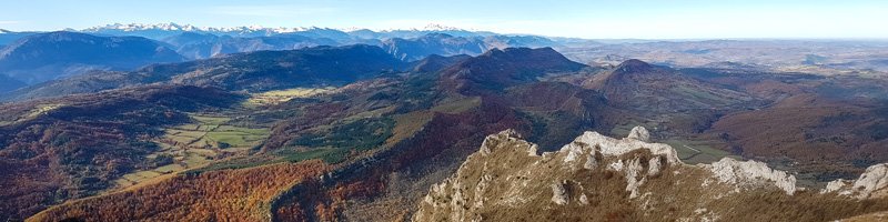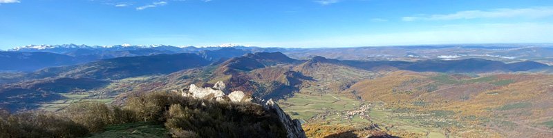 Par beau temps, le meilleur moyen de se reposer de l'ascension est de profiter de l'exceptionnel panorama entourant le Pech de Bugarach.