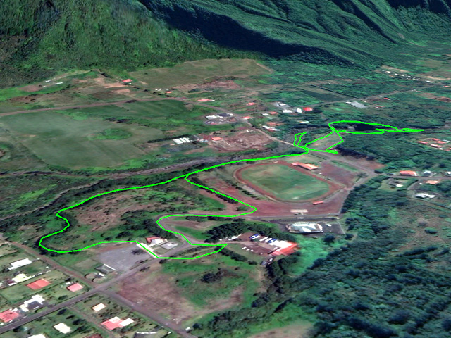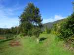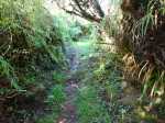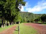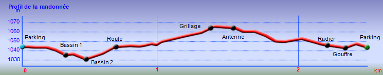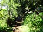Randonnée familiale : Descendre près du bassin est très facile grâce au sentier qui débute près du belvédère (Photo 5). Le tronçon est court mais peut être glissant après la pluie. Il est bordé de fougères, de bois de couleurs et de goyaviers. Les marches facilitent la descente et on arrive en deux minutes sur la rive de la ravine. Le bassin se rejoint en prenant garde aux hautes marches. Malgré l'eau noire, le lieu est agréable à l’œil en fonction de l'heure et de la position du soleil. Le pont et les roches se reflètent pour des photos originales. Ne pas plonger car on ne voit pas les roches dans l'eau sombre. Revenir au sentier et repérer le chemin bétonné qui a été mis en place pour traverser en toute sérénité (Photo 7). En face, à quelques mètres, on aperçoit déjà le sentier qui remonte sur l'autre rive (Photo 8). La traversée est facile même par mauvais temps en raison des aspérités comblées par le béton (Photo 9). La montée est faible au milieu des mousses, fougères, branles et fanjans (Photo 17). Quelques portions peuvent être glissantes mais la pente est faible (Photo 18). Une touffe de bambous marque la fin de la courte montée. On arrive ainsi à la route et au pont. Traverser l'aire de pique-nique ou emprunter la route jusqu'au stade qu'on aperçoit facilement de l'autre côté (Photo 19). Suivre simplement le sentier de droite ou la piste et marcher en longeant la ravine qu'on devine par moments dans les trouées. L'endroit est calme et le sentier agréable sous les filaos qui procurent de l'ombre (Photo 20). Les cryptomerias côtoient un moment les filaos de chaque côté du sentier qui se transforme en piste (Photo 21). Un grillage longeant une propriété oblige à partir sur la gauche pour rejoindre la rue des Gaménolées (Photo 22). Marcher vers l'antenne en employant une piste herbeuse plutôt que le goudron puis partir à gauche sur une courte portion de route en descente vers les terrains de sport (Photo 23). Trouver à gauche une nouvelle allée bordée de filaos qui mène en direction de la Ravine Sèche (Photo 24). On retrouve le sentier pris récemment pour rejoindre l'aire de pique-nique et le véhicule.