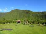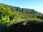 La randonnée débute à l'aire de pique-nique du Bassin Cadet, entourée de goyaviers et quelques bois de couleurs (Photo 1). A l'horizon, on profite des vues sur le rein qui abrite le sentier du Bras Cabot. Partir vers le pont pour repérer le Bassin Cadet et un autre bassin profond très impressionnant en cas de crue (Photo 2). On voit tout de suite que longer le lit de la ravine peut s'avérer dangereux. Près du pont, un belvédère permet de contempler les eaux noires du Bassin Cadet qui incite peu à la baignade (Photo 4).