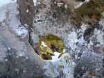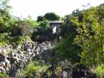 En fin de boucle ou avant de rejoindre le terrain de sport, on peut également remonter la ravine depuis le radier à la recherche de nouvelles pépites naturalistes (Photo 25). Si on la descend vers le pont, on trouve d'abord une profonde cavité alimentée par une petite cascade (Photo 26). Les anneaux fixés au rocher indiquent que les grimpeurs viennent ici s'entraîner à rejoindre le fond. En poursuivant la descente on se retrouve face au pont, très difficile à rejoindre (Photo 27). Enfin, une grande arche de plusieurs mètres trône au fond de la ravine en rive droite et peut se rejoindre au prix de quelques efforts ou escalades (Photo 28). L’exploration de la Ravine Sèche pourrait prendre plusieurs jours entre la Petite Plaine et le Chemin de Ceinture. De magnifiques bassins sont accessibles à partir de la Maison Servaux.