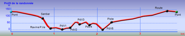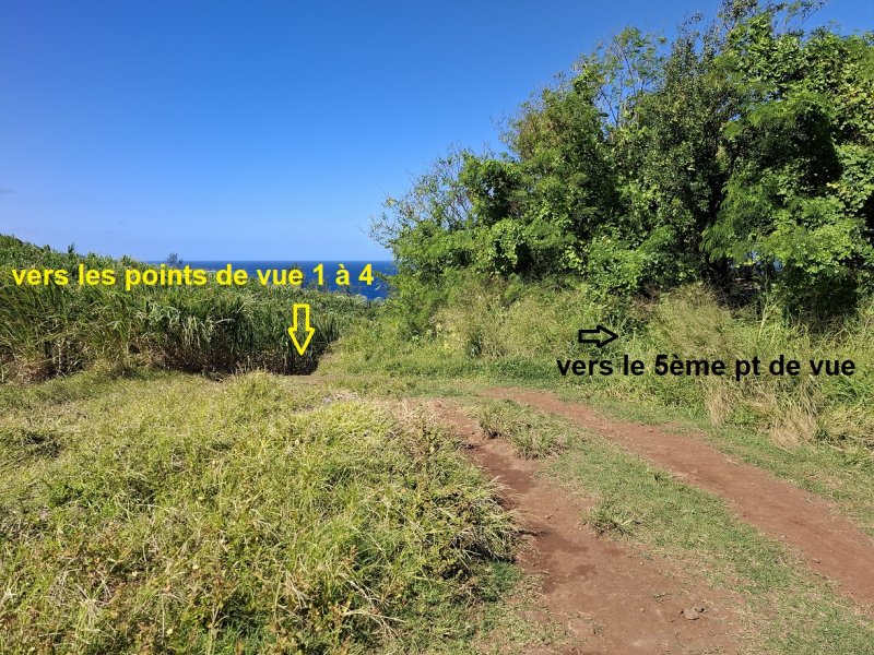 En venant de Saint-Pierre ou de Saint-Joseph, emprunter la D30 en direction de Grande Anse - Stationner en rive gauche de la Ravine de Petite Île, près du pont - Marcher vers Saint-Joseph puis tourner à droite à la première piste rencontrée - Descendre dans les cultures puis dans les cannes jusqu'au premier point de vue - Repartir par la même piste plein est et rejoindre la D3 dans les cannes, les sous-bois et cultures.