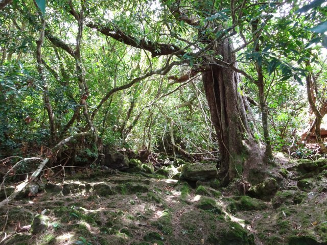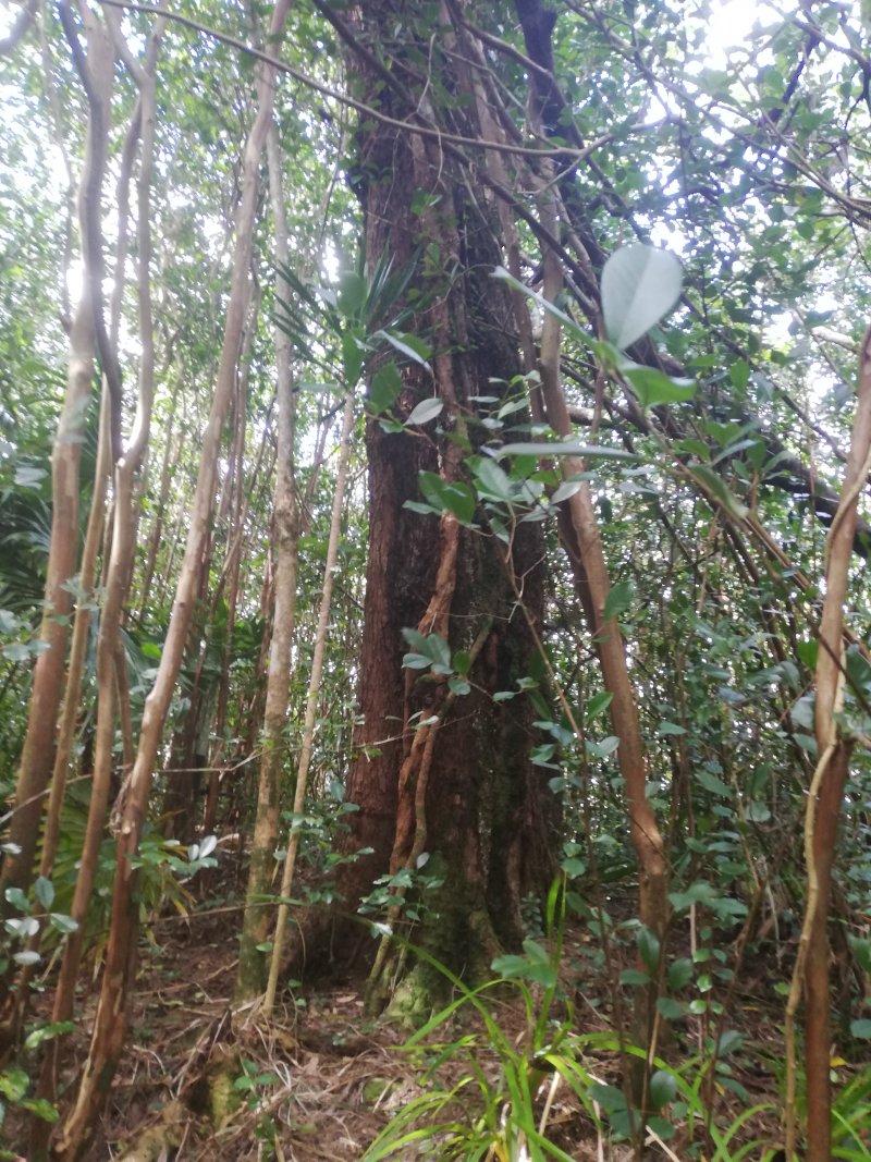D'humeur maussade, je cherchais sur Randopitons une sortie peu commentée et de faible intérêt, afin d'adapter la randonnée à ma mélancolie. Finalement, j'ai apprécié cette petite boucle canniere bien isolée. Et ce d'autant que j'ai entrepris de l'agrémenter par l'ascension du piton Galets par sa face sud ouest. Sommet atteint après avoir traversé quelques cannes, grimpé dans les goyaviers bien serrés et atteint un vieux filaos au sommet, certainement planté comme repère (photo 1). Un poteau bétonné, ancien signal géodésique est au aussi au sommet (photo 2) et peut servir d'objectif supplémentaire à cette sortie. Avec cette ascension, cela donne une promenade pas désagréable avec quelques decametres d'aventure.