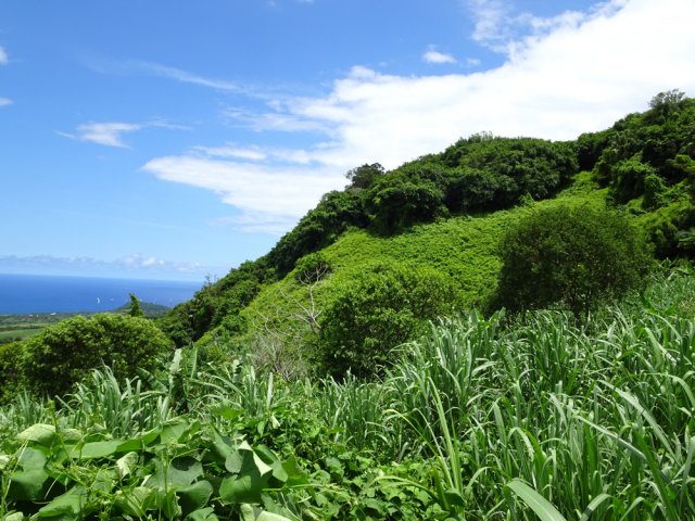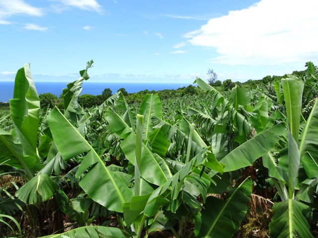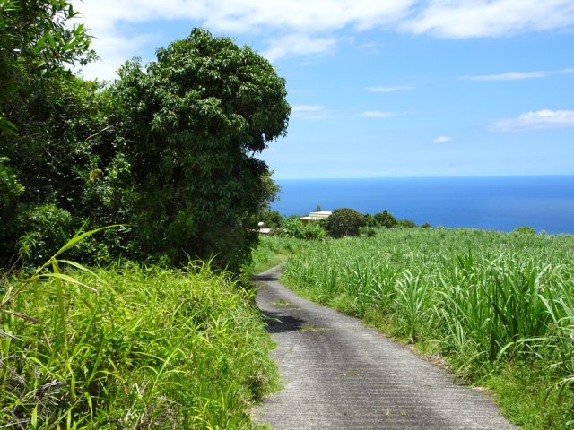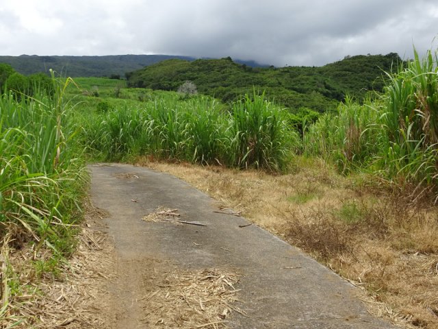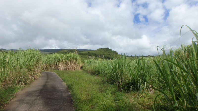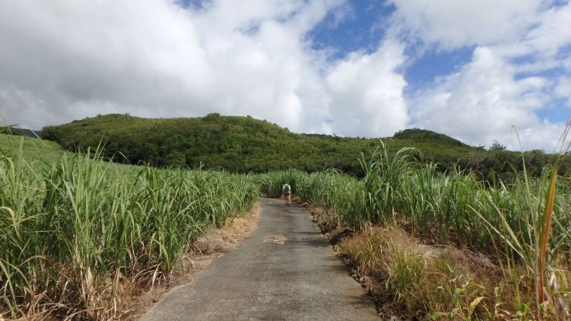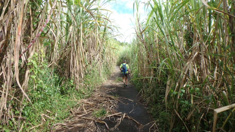 Effectivement ce n’est pas la grimpette du piton des neiges… mais c’est indiqué dans la description du parcours… 😉 néanmoins le parcours est varié entre les plantations de cannes à sucre et les plantations de bananiers. La flore y est variée pour qui sait prendre le temps d’observer. Il est possible de couper à travers les plantations pour quitter le petit chemin goudronné monotone…