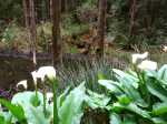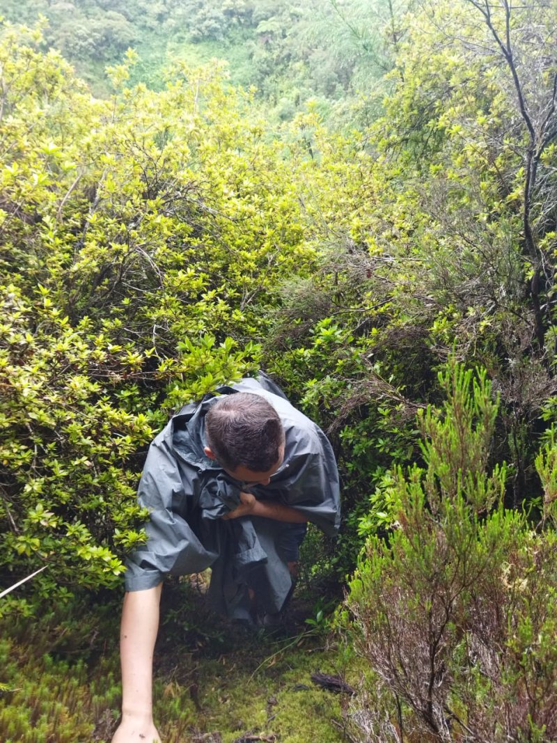 L'aire de pique-nique du Piton Doré, située à 1300 mètres d'altitude, est très bien située pour se reposer autour d'un cari parmi les kiosques répartis autour du parking. L'endroit est calme et abrite quelques sentiers méconnus qu'il sera agréable de parcourir avant ou après les agapes dominicales. Cette courte boucle de moins de trois kilomètres est idéale pour ouvrir l'appétit ou peut très bien remplacer la sieste digestive. Une moitié utilise le début du sentier remontant au piton Textor, l'autre sillonne dans cette immense forêt en longeant de superbes petites ravines moussues. Un petit sentier très discret descend au cœur du cratère, alimenté par des rigoles qui le rendent humide une bonne partie de l'année. Effectuée en période chaude, on aura la chance d'y photographier hortensias, azalées, chèvrefeuille et les arums très présents dans cette région. La descente de 50 mètres est glissante, il n'est donc pas conseillé d'y amener les enfants. Contrairement à cette sortie effectuée le matin, il est préférable de profiter des rayons de milieu de journée pour apprécier la couleur des fleurs.