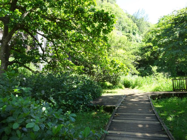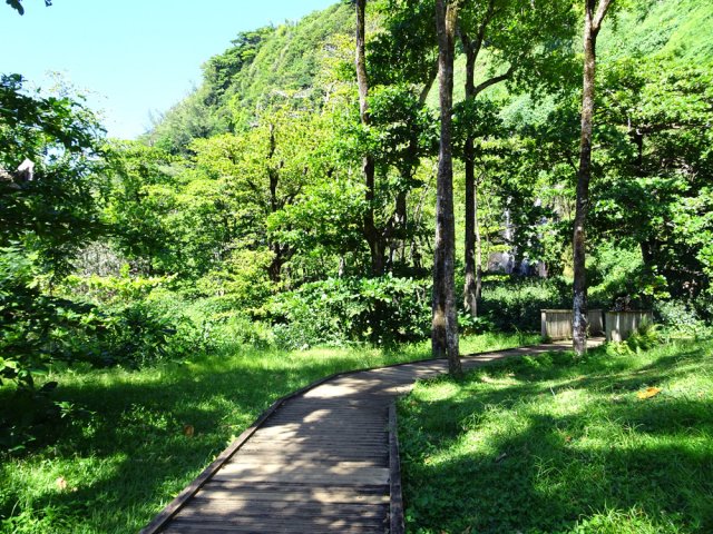 De tous les circuits pour personnes se déplaçant en fauteuil roulant, celui-ci est le plus verdoyant. De plus il propose une balade le long de l'océan et permet d'approcher d'assez près certaines cascades coulant de la falaise. Toute la boucle, très verdoyante offre également de larges zones ombragées pour le repos et de magnifiques kiosques pour le cari en famille. En effectuant la totalité de la piste bétonnée et ses écarts, on dépasse un peu les 1500 m, ce qui justifie un déplacement dans cette région battue par les vagues.