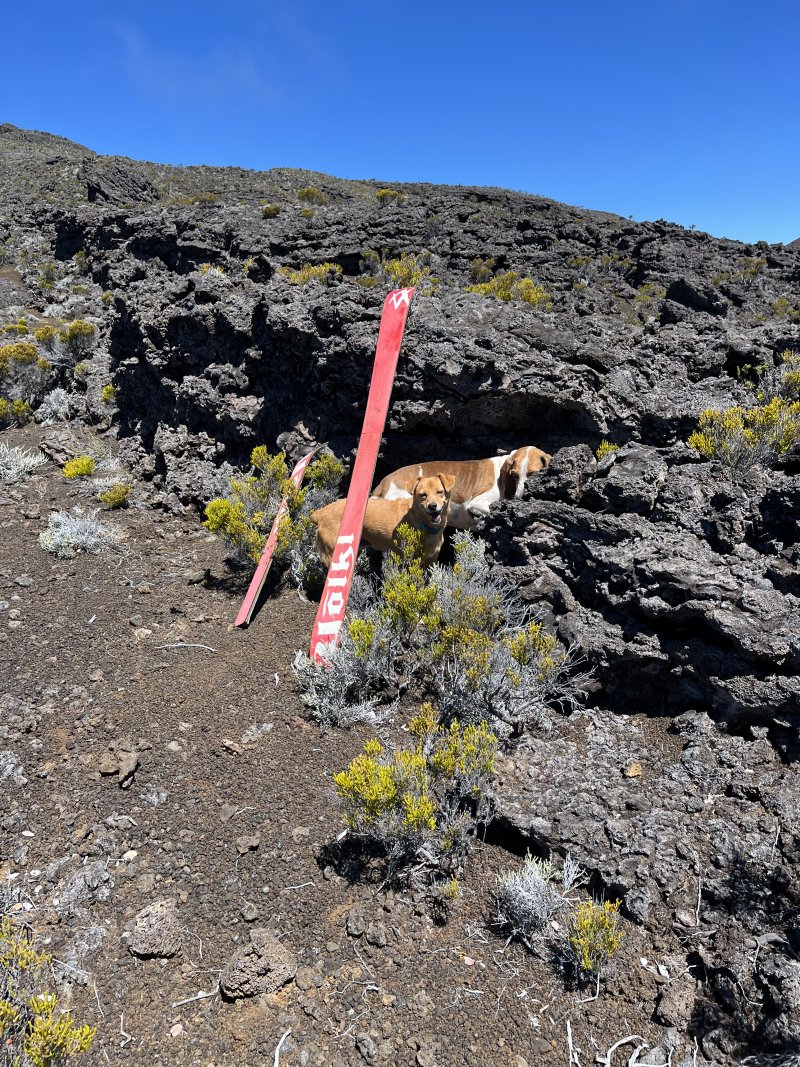 Effectué aujourd’hui lors d’une randonnée méli-mélo inspirée de la 1374 (que je recommande vivement si vous aimez les vues des sommets, et encore plus, si vous pensiez impossible de perdre de vue les voitures dans la Plaine des Sables.) J’ai été étonnée que la trace Randopitons rouge s’écarte pas mal des traces de passage visibles au sol et des sentiers existants. Dommage, car ces sentiers sont safe pour des enfants, et évitent le piétinement des rares plantes qui survivent ici. J’ai aussi eu la surprise de voir que quelqu’un a emmené des skis sur la pente du piton Hauy. 🙂
