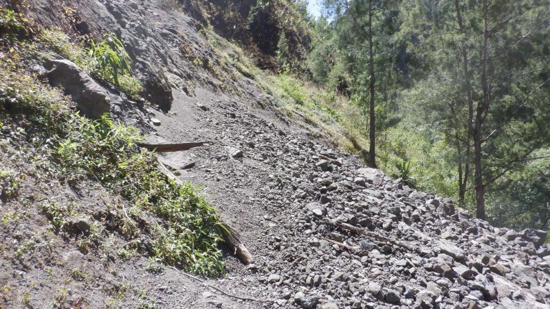 Dans les gorges rétrécis, 2 cassés vont nous causer quelques problèmes, surtout en raison de la pluie qui a rendu la progression très glissante.
