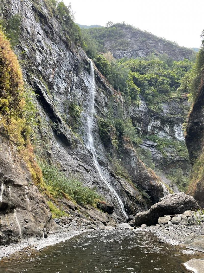 Nous avons fait la partie aquatique de cette randonnée le 18/10/2023. Ça passait plutôt bien en cette période sèche. Nous n'avons pas eu à passer par le boyau de la photo 17 (on ne la pas vu); je pense que la configuration des lieux doit régulièrement évoluer en fonction des crues ou des éboulis. Pour ceux qui seraient tentés de poursuivre la partie aquatique : c'est possible en cette période où les eaux sont moins hautes et on voit encore de belles choses plus en aval (je mets une photo d'une belle cascade qu'on a vu). On a prolongé la sortie jusqu'à sortir au niveau du barrage du basculement des eaux à Bois de Pomme (5h45 pour rejoindre Bois de Pomme). Certains passages en berge pour éviter les cassés infranchissables sont techniques et pas accessibles à tous. Assurez vous de pouvoir rebrousser chemin si nécessaire car on est jamais à l'abri de tomber sur une zone infranchissable plus en aval sur un cours d'eau aussi tumultueux. La rivière Fleurs Jaunes est magnifique du début à la fin.