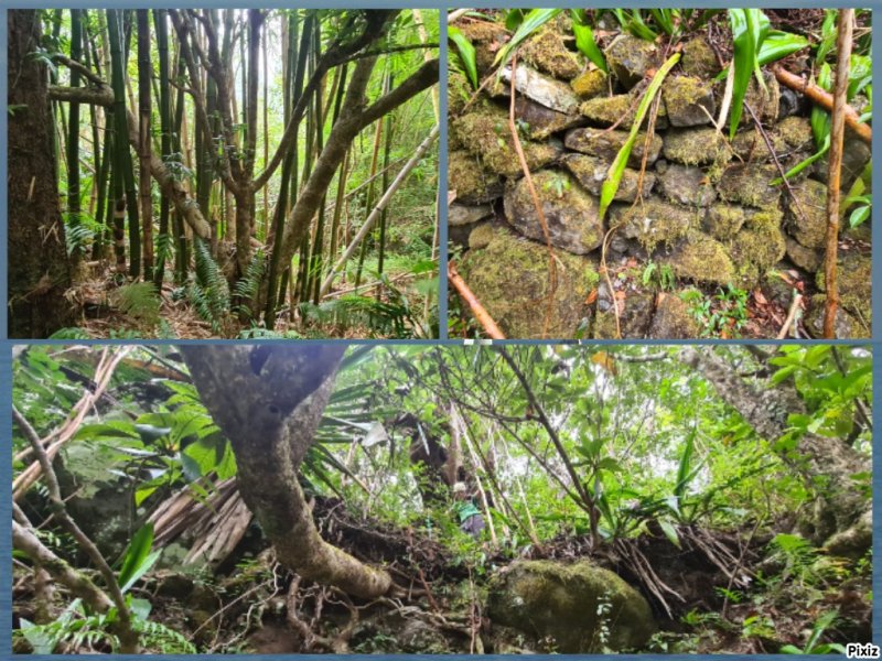 Le début du sentier montant à l'Ilet Bémassoune est effectivement difficile à repérer, mais une fois qu'on l'a trouvé il est bien marqué et il est difficile de le perdre. Bien s'aider des photos et commentaires pour trouver le départ. Une fois sur le plateau nous n'avons rien trouvé de plus que ce qui a déjà été évoqué : des murets de pierres sèches et des traces d'anciennes plantations, voilà tout ce qui reste de la vie d'autrefois. Les plantations plus récentes étaient toujours présentes.