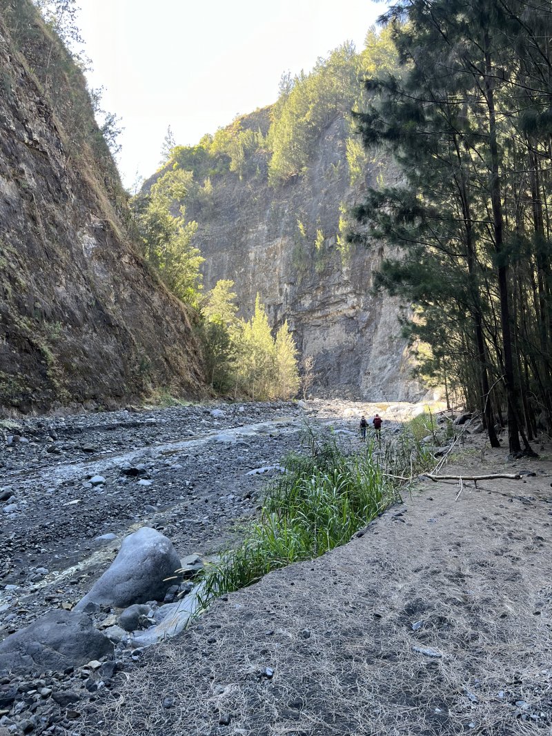 Christian : Vas-y au plus vite sans crainte. Je me suis peut-être mal exprimé dans mes explications. En résumé, pour franchir le canyon de la photo 10 où l'on pourrait penser que l'on est obligé de traverser en nageant, on peut passer en rive gauche sur le talus de la photo 8. On devine le canyon à droite de la photo 8. Un passage naturel, emprunté pour l'occasion par les pêcheurs, passe entre les chocas. Depuis les chocas, on a déjà une vue sur la fin du canyon comme sur la photo 9. Il te faudra juste vider tes poumons pour le passage du court boyau de la photo 17, mais plus loin, après la Ravine Sèche. Quand tu seras sur le Plateau Bémassoune, balade-toi jusqu'aux bambous et un peu partout. Nous ne l'avons pas fait assez puisqu'il nous restait encore 5 heures avant de rejoindre l'Îlet du Butor. Aide-toi de la photo de 1960 pour retrouver les emplacements des cases. Tu pourrais poster en commentaires des images inédites d'autres endroits du plateau à ton retour. Bonne sortie que tu vas adorer.