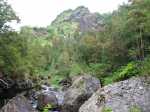 PHOTO 2 : c'est pourtant un petit écart de 30 mn qui nous offrit la plus belle succession de cascades de la journée : après avoir contourné la touffe de choca de la première chute et ensuite deux petites cascatelles, nous avons été ravis de regarder cette haute et fine cascade qui n'est pas sans rappeler la Cascade du Chaudron, y compris pour sa dangerosité (verticalité du site et chute de pierres très probable. Attention).