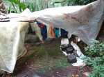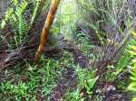 La pluie nous surprend sur le plateau, ça tombe fort et la descente vers la rivière va s’avérer extrêmement glissante.