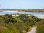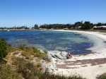 La randonnée débute au port de Thomson Bay où le ferry fait escale. Le sable blanc donne à l'eau une magnifique couleur turquoise (Photo 1). On rencontrera encore de ces belles eaux cristallines en s'approchant des multiples petites plages de l'île. Avant de pénétrer dans les terres, effectuer une visite du village constitué de maisons basses entourées de sable. Une grande partie des habitations sert de villégiature (Photo 2). On rencontre très vite ces adorables marsupiaux se baladant dans les cours (Photo 3). On se demande d'ailleurs de quoi ils peuvent bien se nourrir. Si on poursuit la marche vers le nord, on se régalera à nouveau de beaux panoramas sur l'océan (Photo 4). On peut même repérer Pinky Beach au nord ou Hotel Beach plus au sud pour une baignade bien méritée en fin de randonnée (Photo 5). Revenir au centre du village et entamer la boucle par Digby Drive si on ne va pas vers le golf qu'on aperçoit à l'arrière du premier petit lac qu'on rencontre (Photo 6). Poursuivre sur la petite route qu'on peut quitter à tout moment pour s'en éloigner à la recherche des quokkas (Photo 7). On ne tarde pas à les repérer, souvent à l'ombre en train de sommeiller s'il fait chaud (Photo 8). La route passe entre Herschel Lake et Government Lake. L'eau salée peut prendre des teintes roses en fonction de la lumière ou de la température (Photo 9). Les collines sont très basses mais en montant à la recherche des marsupiaux, on domine la région recouverte de petits arbres (Photo 10). Plus à l'ouest, on domine Serpentine Lake en suivant les pistes dans la colline (Photo 12). Si on rallonge la boucle en filant vers le nord par Defence Road, on trouvera de belles criques isolées entourées de rochers et de ces plantes grasses si particulières de l'île (Photo 13). On tombe à tout moment sur ces adorables peluches qui ne font rien pour se sauver et se laissent photographier sans crainte (Photo 15). A l'approche de la presqu'ile, les vents du large peuvent être plus puissants, levant des vagues n'empêchant pas la baignade (Photo 16). Tout autour, les collines sont recouvertes de cette même végétation où se cachent les quokkas (Photo 17). Ils sont pourtant bien faciles à dénicher (Photo 18). Eviter, tout au long des circuits empruntés de quitter les sentiers, pistes ou routes pour marcher sur ces plantes rases aux couleurs chaudes (Photo 19). Des panneaux régulièrement espacés avertissent de la présence de serpents et il est très fréquent de croiser la route de l'un d'entre eux (Photo 20). L'extrême pointe ouest de l'île vaut à elle seule de se fatiguer dans cette randonnée ensoleillée. Des falaises érodées par les vagues et le vent bordent l'île pour un magnifique spectacle minéral (Photo 21). La présence des reptiles décourage facilement d'aller explorer les falaises comportant quelques petites grottes ou ponts naturels (Photo 22). Reprendre la direction de Watson Bay mais passer par le sud pour effectuer une halte au sommet de la colline abritant le phare en empruntant la Wadjemup Road. Partir ensuite sur la Parker Point Road qui longe la côte sud. La route étant longue, il est possible de couper vers le nord et passer à Oliver Hill Lookout pour profiter des derniers points de vue sur l'île avant de reprendre le bateau (Photo 24). Rejoindre le village avec de nouvelles rencontres de ces adorables bébêtes. En fonction de l'heure, il est à nouveau possible de flâner dans le village ou revenir vers les belles plages qui bordent les habitations.