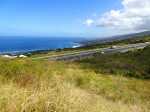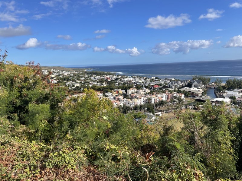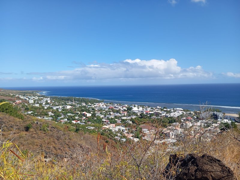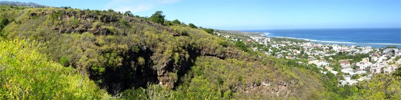 La randonnée peut débuter n'importe où dans Saint-Leu en fonction du programme prévu à la fin du dernier sentier. La présente boucle débute au parking situé au plus près de la Ravine de la Fontaine. Si l'on commence par la visite de la ville, partir vers le port en s'approchant de l'église dans son écrin de verdure, de la mairie en pierre de taille volcanique, du monument dédié à la révolte des esclaves ou du monument aux Morts au milieu de son rond point (Photo 1). Passer ensuite vers le port avant de poursuivre en direction de la Rue de la Croix pour entamer la partie randonnée nature. Un très vieux sentier commençant par quelques marches se trouve légèrement sur la gauche en arrivant à la Rue Haute. Il disparaîtra bientôt sous les immeubles mais permet encore de rejoindre le Chemin Dubuisson. Partir à droite sur la route et marcher jusqu'au lacet. Le quitter pour pénétrer dans une ruelle bordée de quelques habitations. La ruelle, très courte, se poursuit par un sentier facile à repérer dans les acacias. Le sol est recouvert de pierres inégales, comme tous les sentiers autour de la ville (Photo 2). La descente est rapide en direction de la Ravine des Poux qu'on ne quittera guère des yeux tout au long de la boucle. La disposition des pierres ou des murets près des petites grottes montre que le sentier a eu de l'importance à une époque. Il franchit la ravine à sec à quelques mètres d'un cassé de cascade. Il remonte sur l'autre versant dans les mêmes conditions et rencontre très vite le sentier Canal bordé de gros tamarins centenaires (Photo 3). La végétation est toujours aussi pauvre de chaque côté du sentier et les lianes corail, de plus en plus nombreuses, recouvrent presque tout (Photo 4). La montée régulière n'est pas très forte. Le parcours longe plusieurs habitations où l'odeur des biquettes l'emporte sur celle des fleurs. Il coupe la fin du Chemin Canal (Photo 5) puis se poursuit en direction de la Route des Tamarins dans les cassisLeucaena leucocephala : originaire d'Amérique du Sud, a été importé par M. Desbassyns comme fourrage pour les animaux. Il envahit désormais tout l'Ouest. et les zépinardsAcacia farnesiana : Originaire d'Amérique, il porte des épines et fleurit en pompon jaune. Très envahissant et impossible à éradiquer en longeant une ancienne canalisation (Photo 6). Un long détour parallèle à la RN1 est nécessaire pour se diriger vers le viaduc surmontant la Ravine des Poux (Photo 7). Passer sous l'ouvrage, délaisser l'escalier et partir vers la falaise pour y dénicher le sentier permettant de rejoindre l'autre rive en franchissant le gué sur la Ravine des Poux (Photo 8). La jonction est courte mais assez technique sur les grosses roches qui bordent la ravine (Photo 9). Une fois sur l'autre rive, longer la RN1 sur quelques dizaines de mètres, rejoindre la D22, marcher jusqu'au pont et emprunter les sentiers qui mènent à la Rue des Cotonniers (Photo 10). Longer cette petite rue bétonnée puis filer tout droit dans le premier grand virage à droite (Photo 11). Marcher en direction de la RN1 qu'on aperçoit avant de la dominer (Photo 12). Partir à gauche près des prochaines cases et poursuivre dans les herbes, épineux et cailloux. On rencontre également plusieurs sentiers. Suivre les marques et flèches blanches, principalement quand on traverse des pierriers peu évidents (Photo 13). Rejoindre le bord de la RN1 et marcher en direction du pont (Photo 14). Descendre par l'escalier pour atteindre le bas de l'ouvrage. Trouver facilement le sentier qui descend dans les chocas vers la Ravine de Petit Etang en-dessous du viaduc. On retrouve le même paysage que pour la traversée de la Ravine des Poux (Photo 15). La montée caillouteuse assez raide finit au pont. Partir à gauche, passer dessous et rejoindre le sentier de Grand Etang (Photo 16). Ce sentier dans les hautes herbes est facile et agréable. Il oblique plus loin sur la gauche et se dirige vers Saint-Leu. Le prochain sentier part sur la droite pour franchir la Ravine de Grand Etang. Si on ne l'a pas repéré, on arrive aux barrières entourant les minuscules champs de maïs (Photo 17). Faire alors demi-tour sur moins de 20 m pour retrouver à gauche la bifurcation et poursuivre vers la ravine sur un sentier très bien entretenu (Photo 18). Son excellent état est dû à Monsieur Nativel qui effectue plusieurs fois par jour l'aller-retour jusqu'à la ravine pour y puiser l'eau nécessaire à ses petites cultures (Photo 19). Ne pas hésiter à rejoindre la ravine pour la remonter jusqu'à la cascade à sec près de la RN1 (Photo 20). La promenade sur le basalte érodé est très plaisante. Sinon (ou après la visite), franchir le gué sur la Ravine de Grand Etang. Pour cela, suivre les flèches blanches vers l'aval dans le lit de la ravine. A moins de 10 mètres du départ du sentier en rive droite, un grand cassé doit accueillir une belle chute en cas de fortes pluies (Photo 21). Le sentier grimpe ensuite le rempart rocheux en longeant de hautes falaises (Photo 22). Il est assez rocheux mais se pratique aisément. On y rencontre un bel affouche rouge tentant vainement d'étouffer un gros rocher (Photo 23). La falaise est un véritable gruyère qui offrira aux amateurs quelques belles grottes, cavités et sculptures de vieilles laves (Photo 24). Le sentier remonte une dernière fois pour parvenir dans une savane herbue (Photo 25). Suivre les balises blanches sur le sentier principal qui se termine à la petite route de la Salette. Partir à gauche, marcher vers Notre Dame de la Salette, repérer un antique réservoir d'eau de 1903 sur la gauche (Photo 26), emprunter les escaliers (Photo 27) et terminer la descente à la Rue Haute en passant devant la chapelle (Photo 28). La partie sentier étant terminée, rejoindre le véhicule directement ou flâner dans la ville à la recherche de nouvelles curiosités.