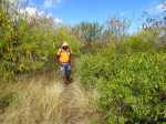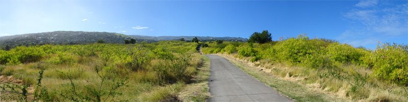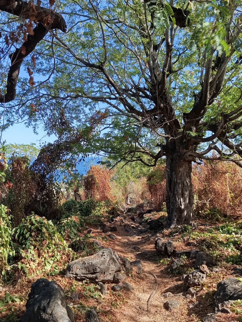 Si le sentier de la Salette a été happé par l'urbanisation, les sentiers Pavé, Grand Etang et Canal sont toujours tels qu'ils devaient l'être au siècle dernier. Ce sont les plus fréquentés par les randonneurs et les coureurs à l'entraînement. D'autres sentiers moins connus permettent de les relier entre eux et ainsi créer un maillage de nouveaux circuits au plus près de la ville de Saint-Leu. Cette courte boucle emprunte quatre de ces sentiers bien balisés suite à des courses organisées dans la région. Ils permettent de franchir la Ravine des Poux, la Ravine de Petit Etang et celle de Grand Etang, toujours à sec mais bordées de pierriers stables de millions de roches acérées sur lesquelles il vaut mieux ne pas glisser. Si les cultures de la région ont pu être prospères au 19ème siècle, ce sont désormais les herbes, acacias, épineux et surtout une dizaine d'espèces de plantes laissant leurs graines sur les vêtements qui prospèrent. Prévoir des vêtements synthétiques adaptés à ces attaques incessantes et difficiles à éviter. Ne pas oublier la boisson, surtout en période chaude où les roches ont vite fait d'atteindre 50°.