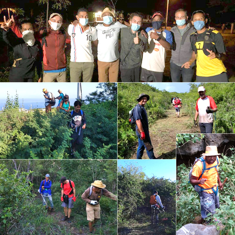 Clovis : "Le confinement a réveillé les velléités de liberté notamment de trouver des espaces "nature " aussi mes dalons et moi avons-nous créé une nouvelle association de sauvegarde de ces sentiers lontan notamment sur Saint-Leu. Symboliquement, pendant une dizaine de demi-journées sur nos samedis libres tel le sphinx nous avons fait renaître le sentier lontan "Borne Châteauvieux" qui était voué à disparaître, complètement enfoui sous la végétation. Nous avons été rejoins par d’autres passionnés des associations SCABE et le Club d’Athlétisme de Stella pour ne citer qu’eux."
