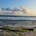 A cette période de l'année, le soleil ne se couche pas vraiment au dessus de l'eau mais légèrement derrière la falaise.