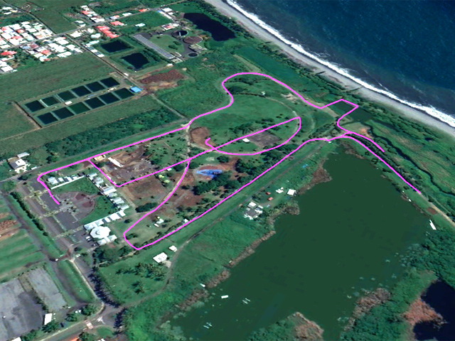 Se rendre à Saint-André et se rapprocher de la mer en suivant les panneaux indiquant le Parc du Colosse - Stationner sur le grand parking - Pénétrer dans le parc en fonction des horaires d'ouverture - Faire le tour des installations en suivant les multiples pistes bétonnées - Revenir au parking.