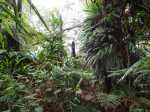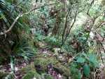 Nous redescendons à la ravine de la Vierge pour repartir de plus belle en montant dans le rempart vers la droite. De nouvelles falaises, du vide cette fois sur notre droite et toujours là aussi quelques bribes de traces sur les arbres et au sol un semblant de sentier, bien encourageant. Nous arrivons triomphalement sur la crête dans un fouillis de végétation, de troncs, de fougères, de pailles sabres... Est ce là ou à peu près là la Fenêtre, celle de droite ? En tout cas, pas de panoramas. La trace randopitons n'est pas loin de la nôtre alors ? On en reste là pour aujourd'hui car, de plus des nuages menaçants se rapprochent.