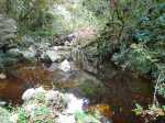 On ne se pose alors plus de questions, on avance sereinement . Pause à la Fenêtre, grande ouverte sur de grands coins de ciel bleu, pour le casse-croûte et les photos panoramiques sur le cirque de Salazie -Piton des Neiges, Cimendef, Roche Ecrite, Piton d'Anchaing - tous déjà conquis antérieurement- puis descente jusqu'à la ravine de la Vierge, par un sentier vert et moussu, bien mieux marqué. Randopitons parle toujours du Bras de Caverne et même dans le titre de la fiche, mais celui-ci semble bien plus en aval après le confluent de la ravine de la Vierge avec la ravine Fleurs Jaunes ? (pour l'anecdote bien sûr)